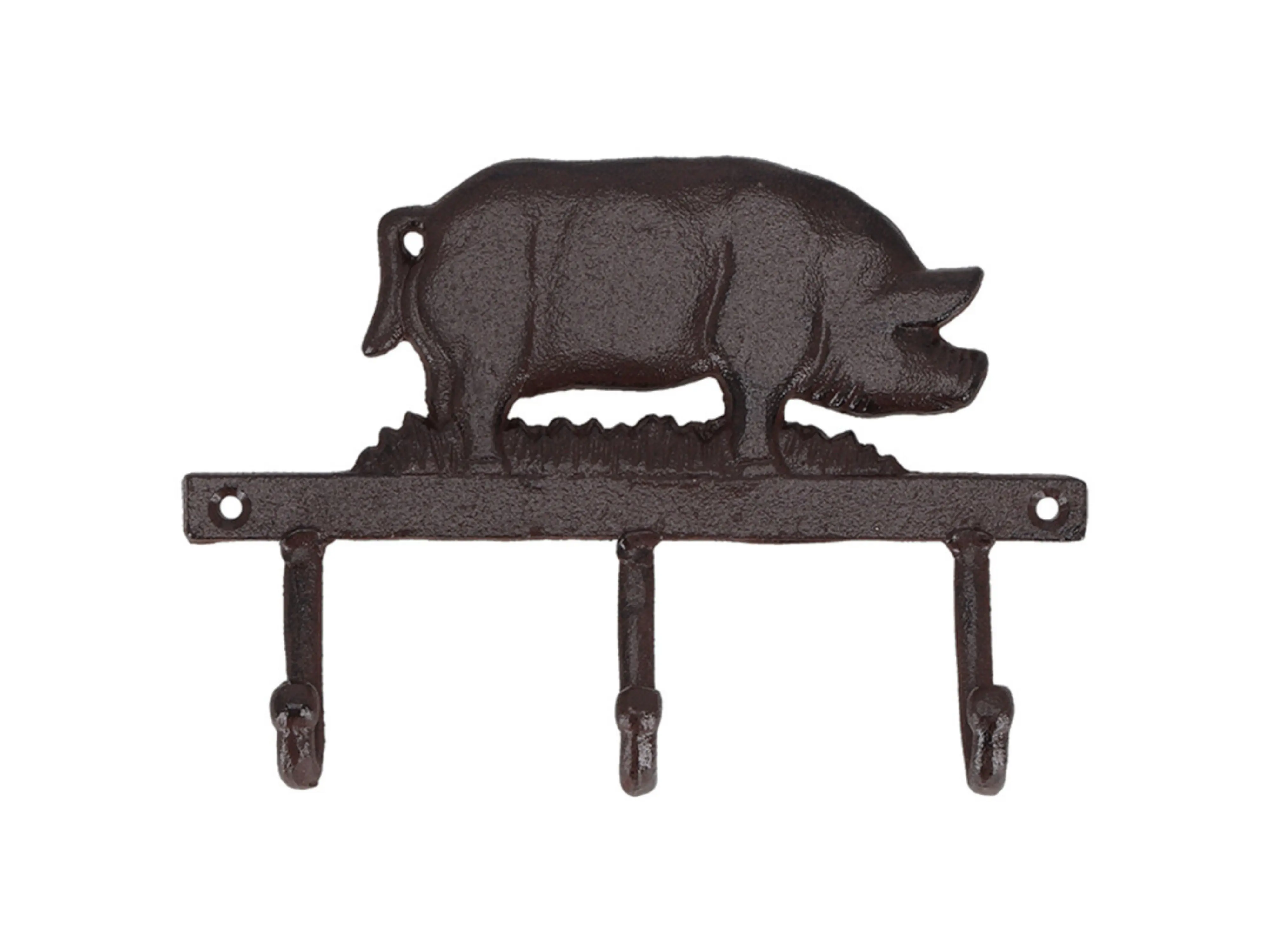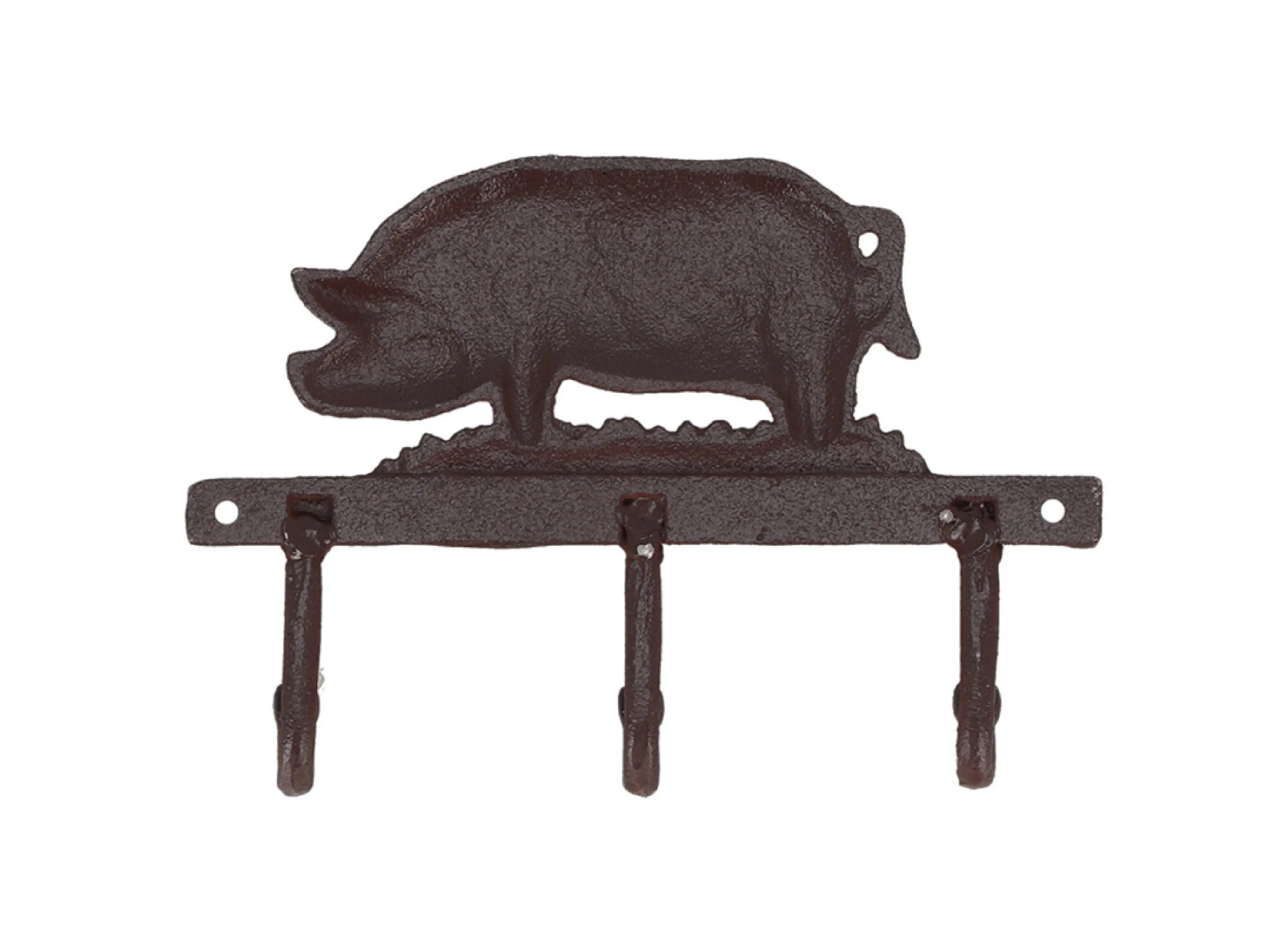 De wandhaak is met de hand gegoten uit gietijzer volgens eeuwenoude traditie en vakmanschap, waardoor elk stuk uniek is en een authentieke uitstraling heeft. Het boerderijdier-design (koe, haan of varken) geeft extra charme aan je interieur of buitenruimte.