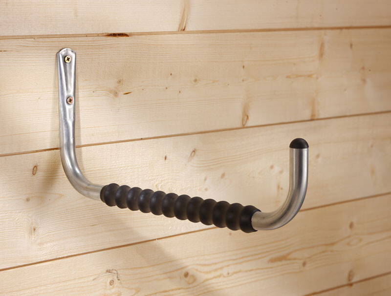 De wandhaak XXL is een stevig en veelzijdig hulpmiddel voor het opbergen van fietsen, ladders of tuinmateriaal. De wandhaak is voorzien van een antislip rubberstrip die bescherming biedt tegen krassen en andere beschadigingen.