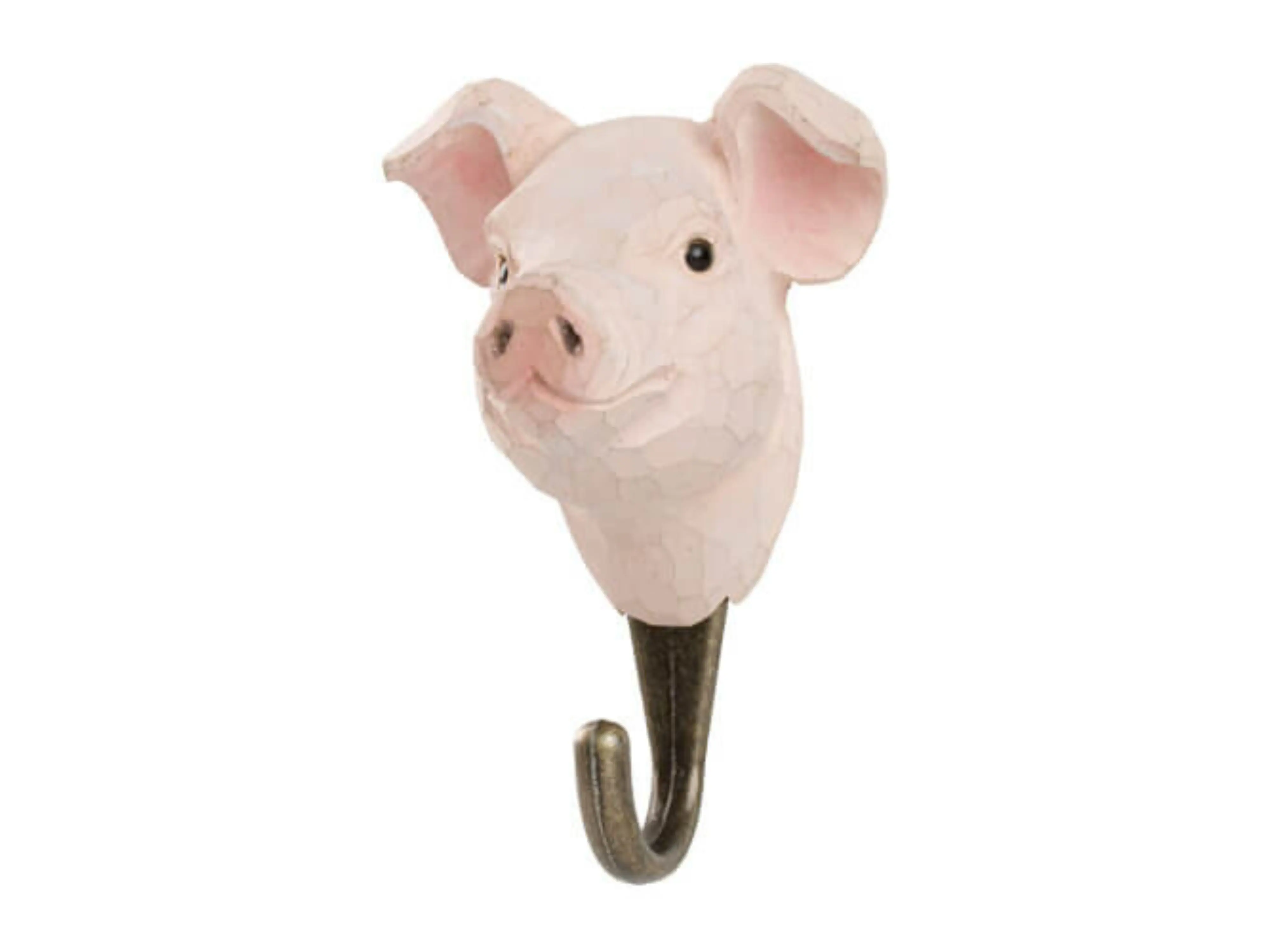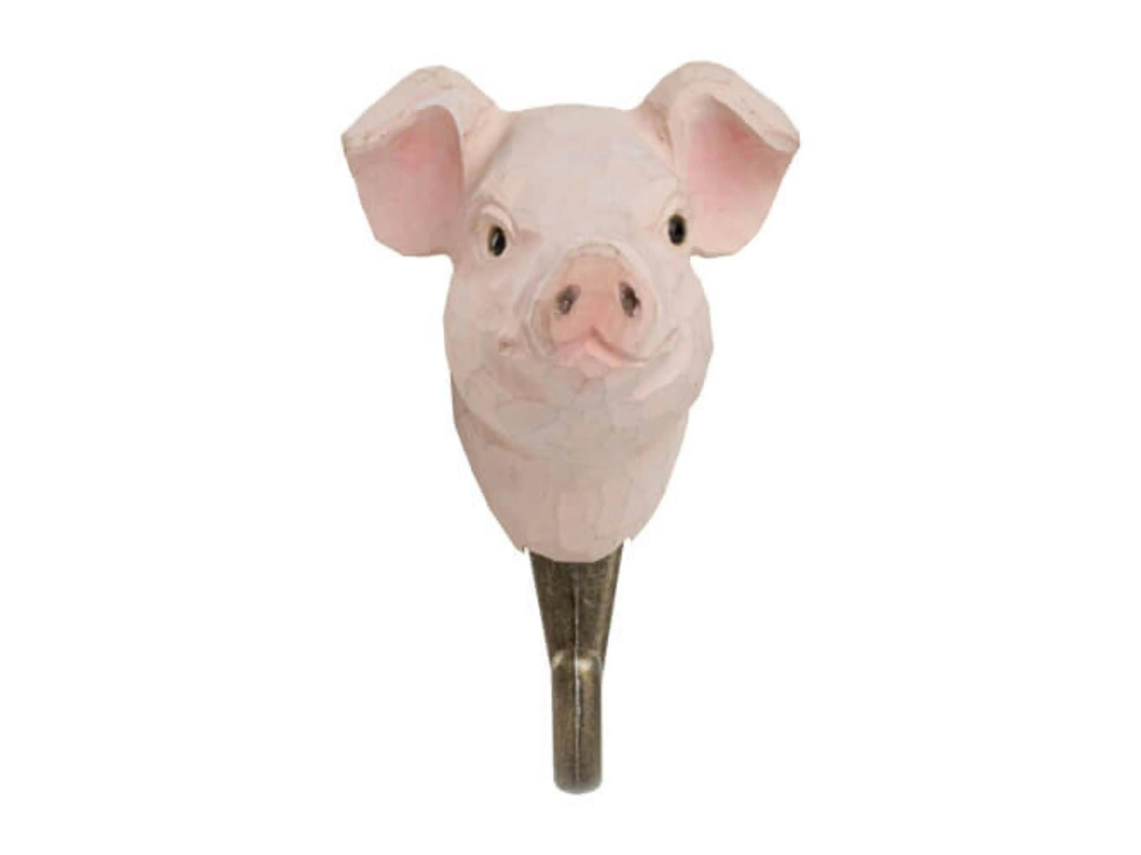 Deze prachtige haak in de vorm van een varken is een unieke decoratie en fleurt elke ruimte in de woning meteen op. Ook leuk om te combineren met andere boerderijdieren uit de reeks.