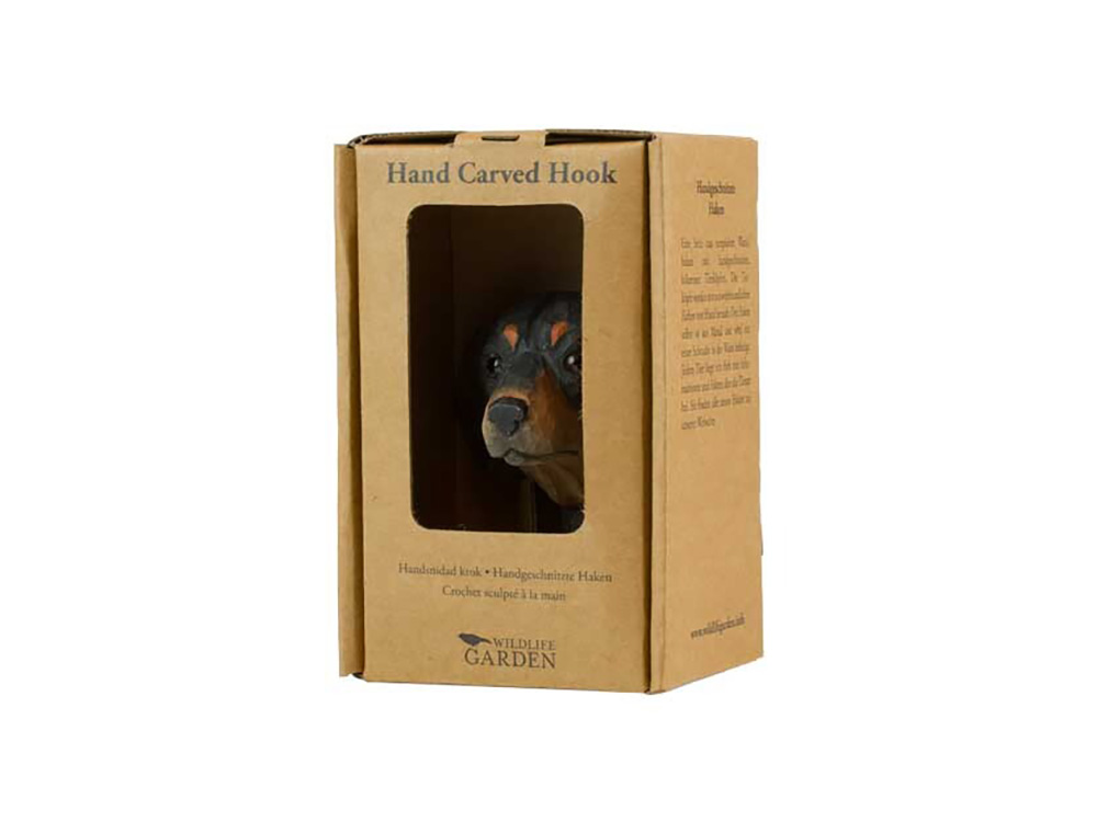 Deze prachtige haak in de vorm van een teckel is een unieke decoratie en vrolijkt elke ruimte in de woning meteen op. Ook leuk om te combineren met andere honden uit de reeks.