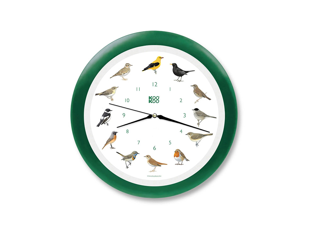 De klok is voorzien van illustraties van 12 verschillende zangvogels op de wijzerplaat en de cijfers 1 tot en met 12 om het uur aan te duiden. Op elk heel uur zingt een zangvogel ongeveer 10 seconden zijn melodie. Deze geluiden zijn originele geluidsopnames, opgenomen in de vrije natuur.