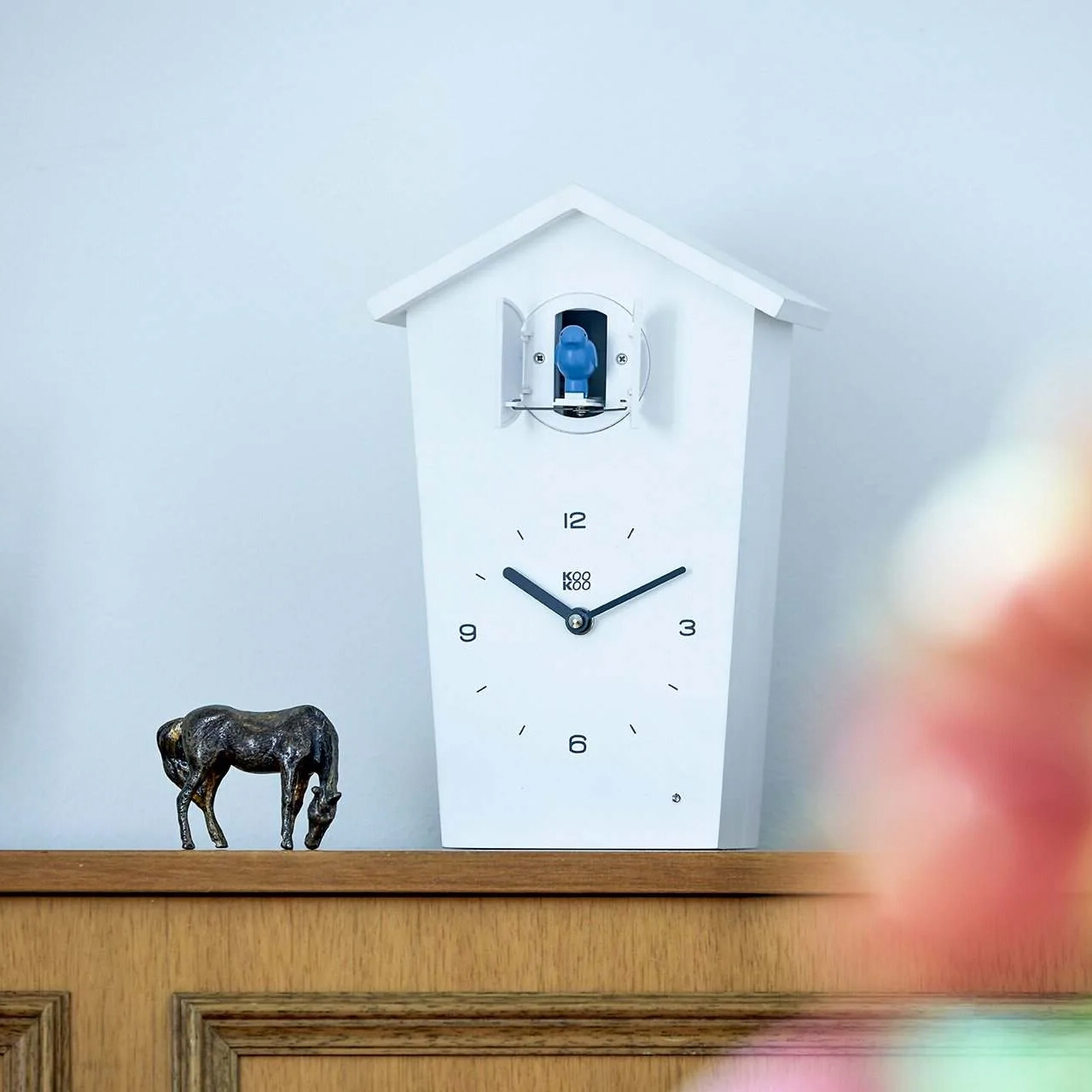 Superleuke, moderne koekoeksklok met slinger van het Duitse merk KooKoo. Het design is duidelijk, strak en puur! Elk uur komt er een vogel naar buiten en roept een of meerdere keren, afhankelijk van het uur. Je kan daarbij kiezen uit 12 authentieke vogelgeluiden of de roep van een koekoek. Een ingebouwde lichtdetector zorgt voor een stille nacht in de BirdHouse klok.