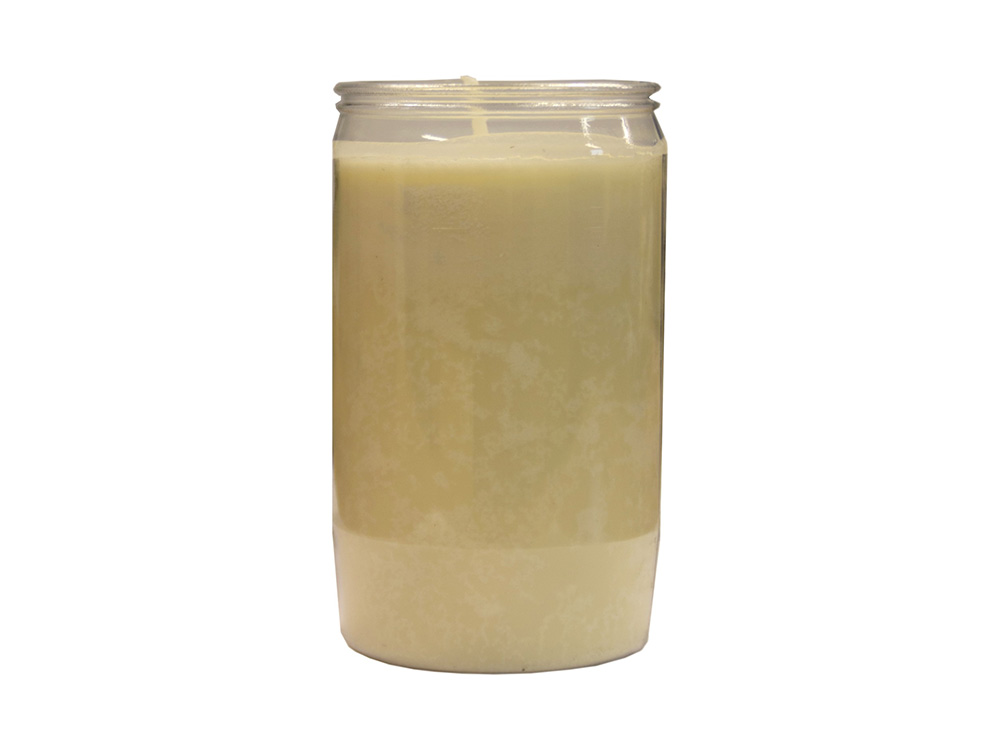 Dit is een kleinere versie van de echte noveenkaars en brandt 3 dagen en nachten. Deze witte noveenkaars zit in een witte doorzichtige kunststof houder.