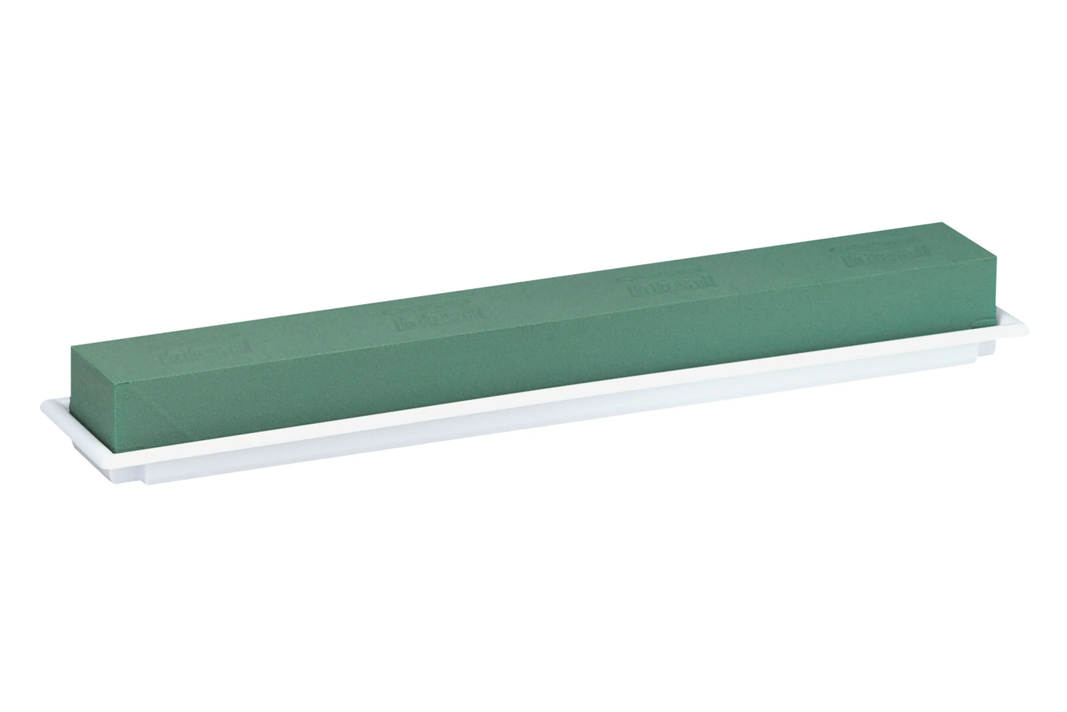 De foam wordt geleverd in een stevige kunststof schaal. Hou het pronkstukje lang vers door regelmatig bij te vullen met water.
