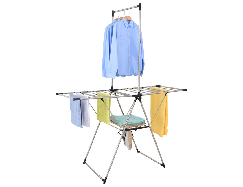 Dit heavy duty droogrek heeft meer liefst 20 meter drooglengte, goed voor ongeveer 2 volle trommels wasgoed. Aan het extra kledingrek kan je meerdere hemden en blouses drogen zonder ze te kreuken. Er is bovendien een houder voorzien voor schoenen.