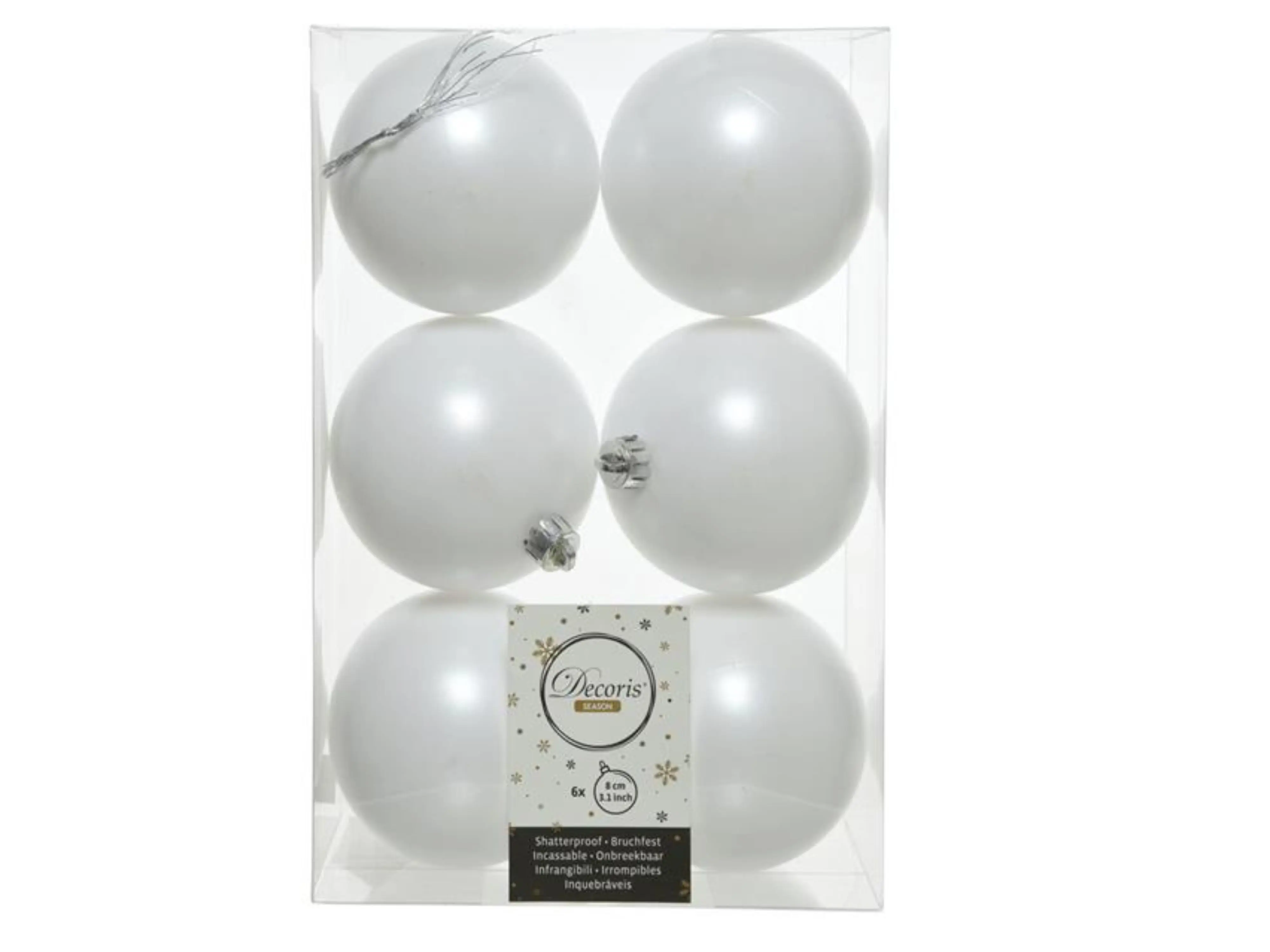 Kerstballen kunststof Ø 8 cm - winterwit mat