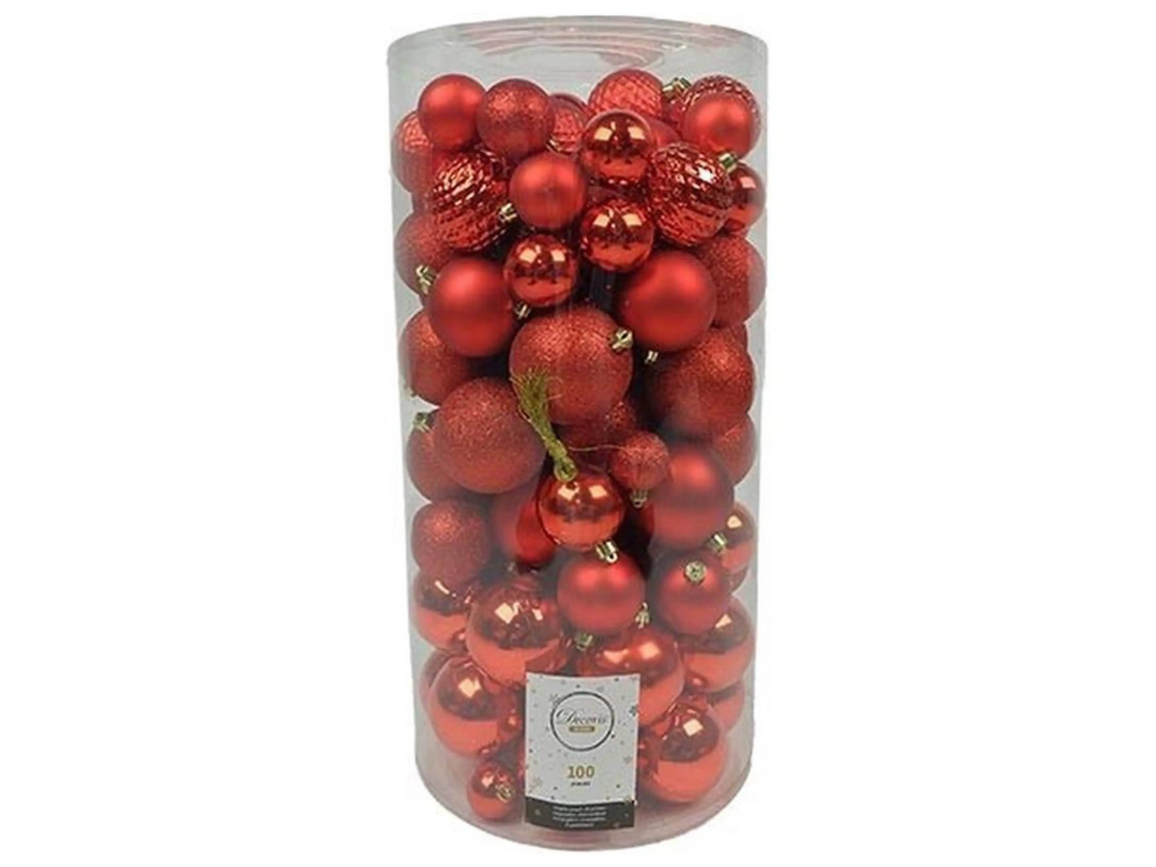 Heb je een grote kerstboom om te versieren? Dan is dit set met 100 kerstballen beslist iets voor jou. Het set bestaat uit een mix van verschillende modellen in een mooie trendy kleur. De glanzende, matte en glitterende kerstballen, en ballen met reliëf worden geleverd in verschillende afmetingen. Ze kunnen ook gebruikt worden om een mooie transparante vaas of een schaal op de feesttafel te vullen.