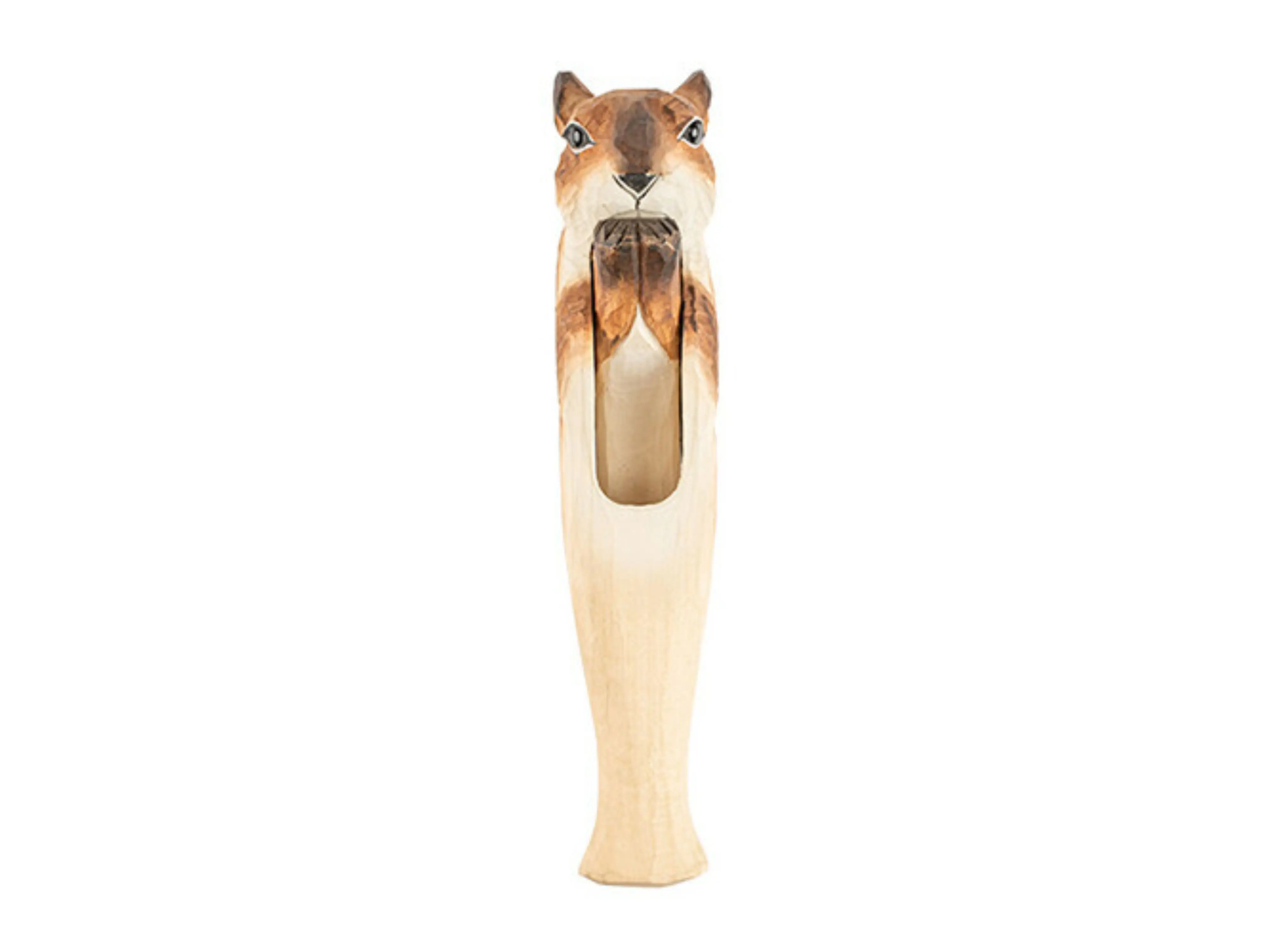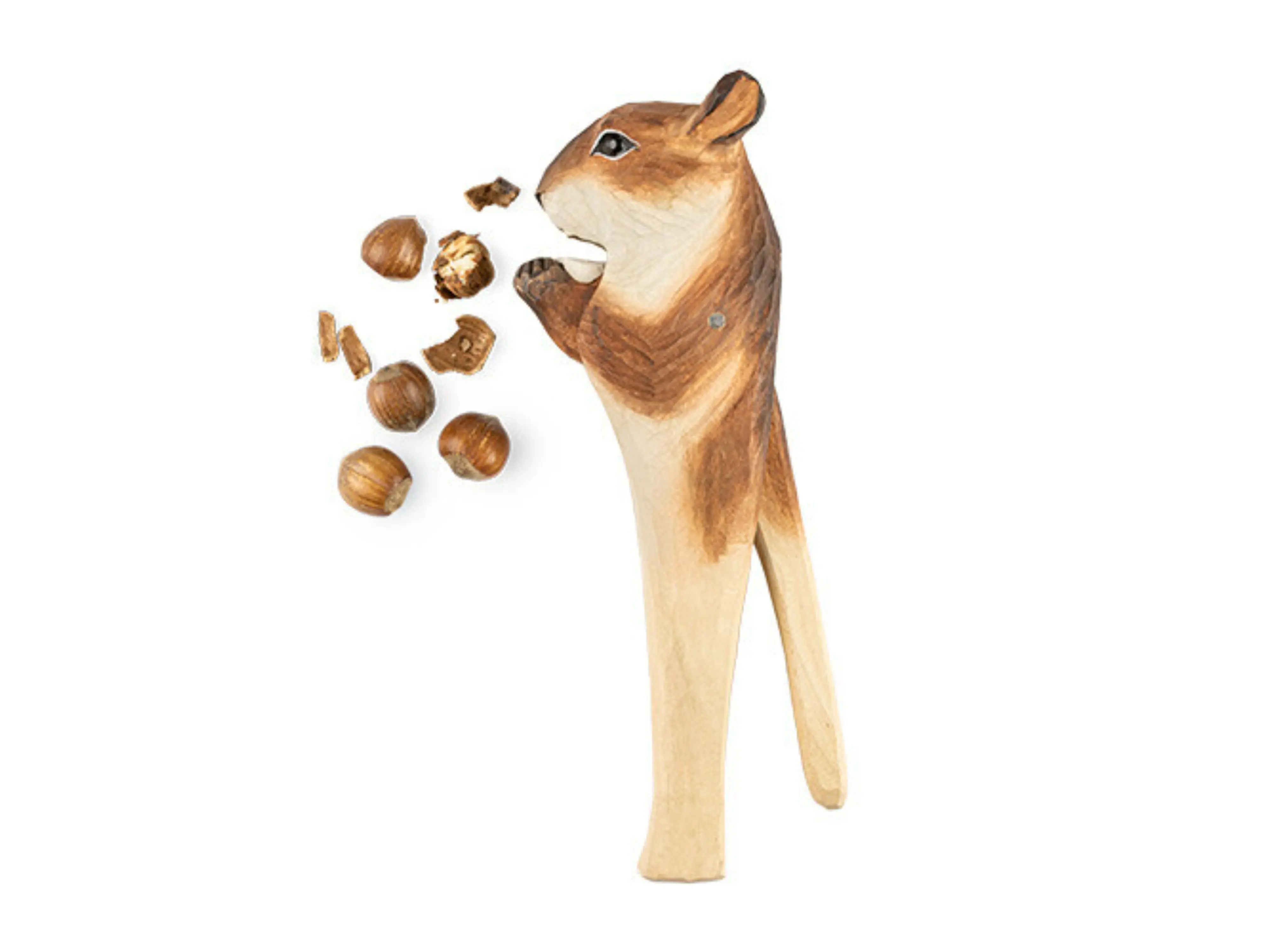 Breng sfeer en functionaliteit samen met onze decoratieve houten notenkraker in de vorm van een schattige eekhoorn. Deze stevige notenkraker is volledig uit lindehout gemaakt, met de hand gesneden en handgeschilderd met watergedragen verf, waardoor elk exemplaar uniek is.