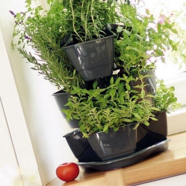 Deze antraciete kruidentoren is een leuke aanvulling op het terras of zelf in de keuken. De toren bestaat uit drie lagen en is goed voor zo'n 10 kruidensoorten. Uiteraard kan de toren ook met andere planten zoals viooltjes of aardbeien worden gevuld!
