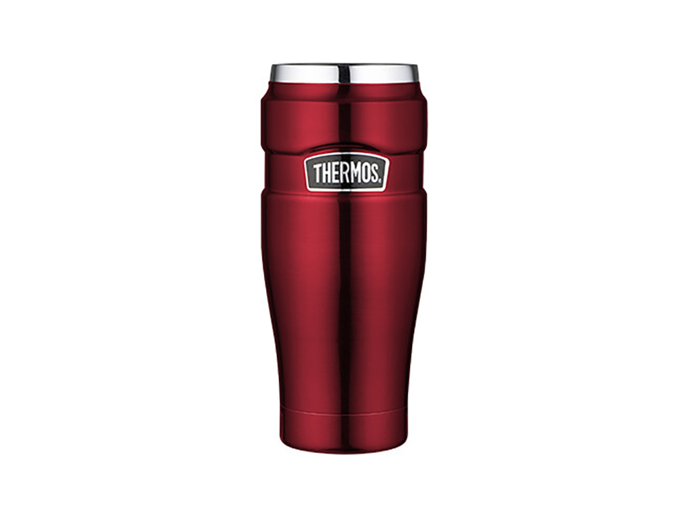 Handige thermosbeker King in een perfecte verpakking. Ondanks zijn compacte formaat levert de Thermos King geen half werk als het op smaak aankomt. Zowel bij vrieskou als op een snikhete zomerdag geldt hetzelfde: het dubbelwandige roestvrije staal met de Thermos isolatietechnologie verhindert warmte-uitwisseling met de buitenwereld. Warm blijft dus warm en koud blijft koud.
