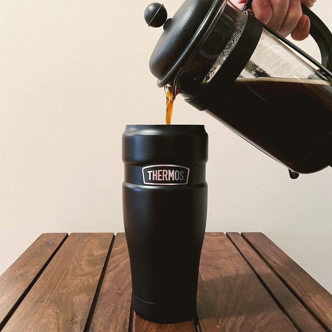 Handige thermosbeker King in een perfecte verpakking. Ondanks zijn compacte formaat levert de Thermos King geen half werk als het op smaak aankomt. Zowel bij vrieskou als op een snikhete zomerdag geldt hetzelfde: het dubbelwandige roestvrije staal met de Thermos isolatietechnologie verhindert warmte-uitwisseling met de buitenwereld. Warm blijft dus warm en koud blijft koud.