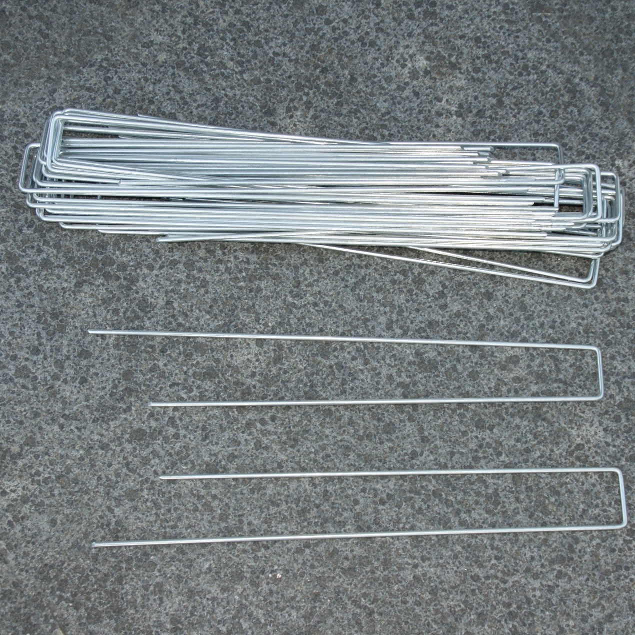 Deze metalen U-pinnen zijn verzinkt en gepunt zodat je ze vlot in de grond duwt en doorheen doeken en vliezen steekt.