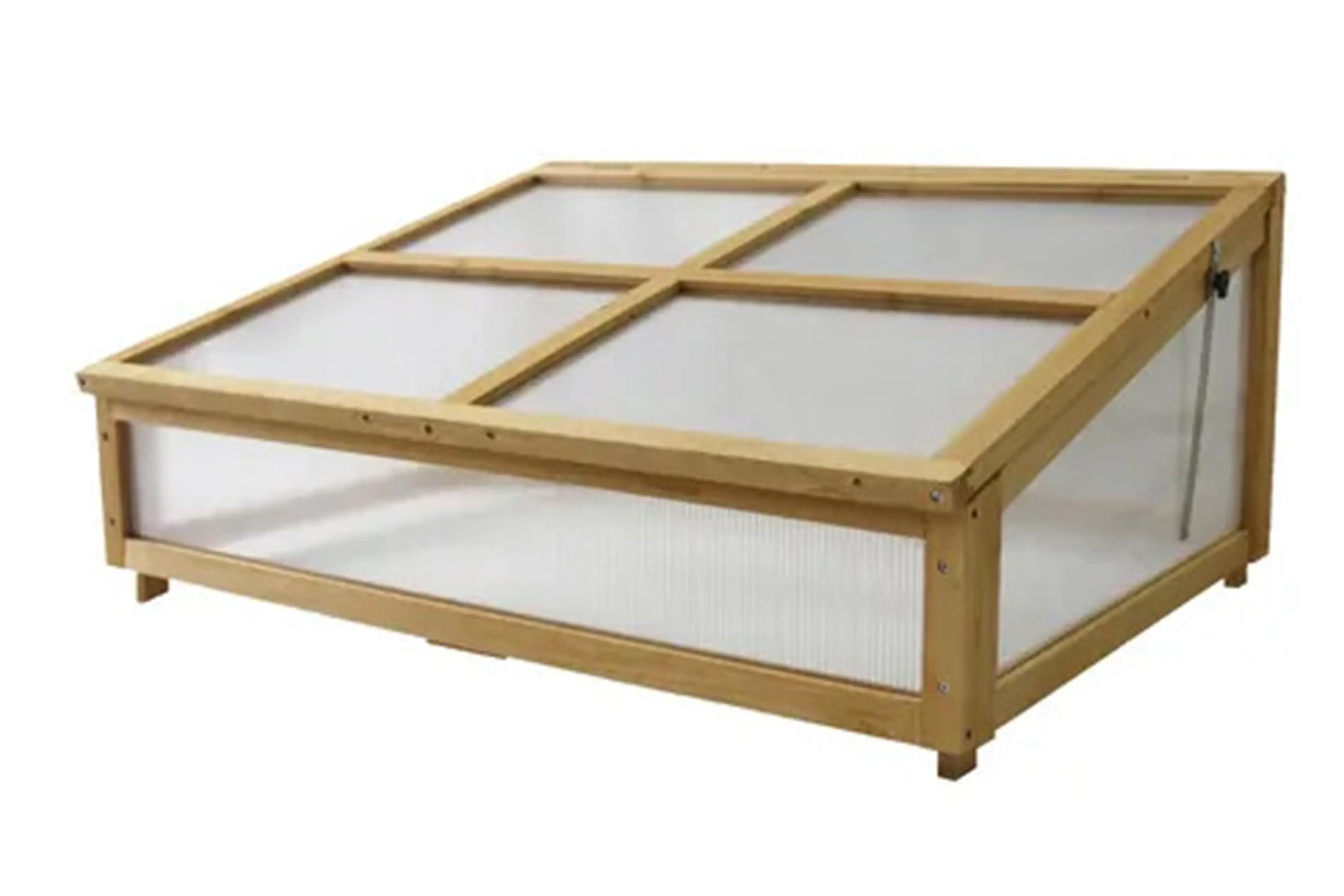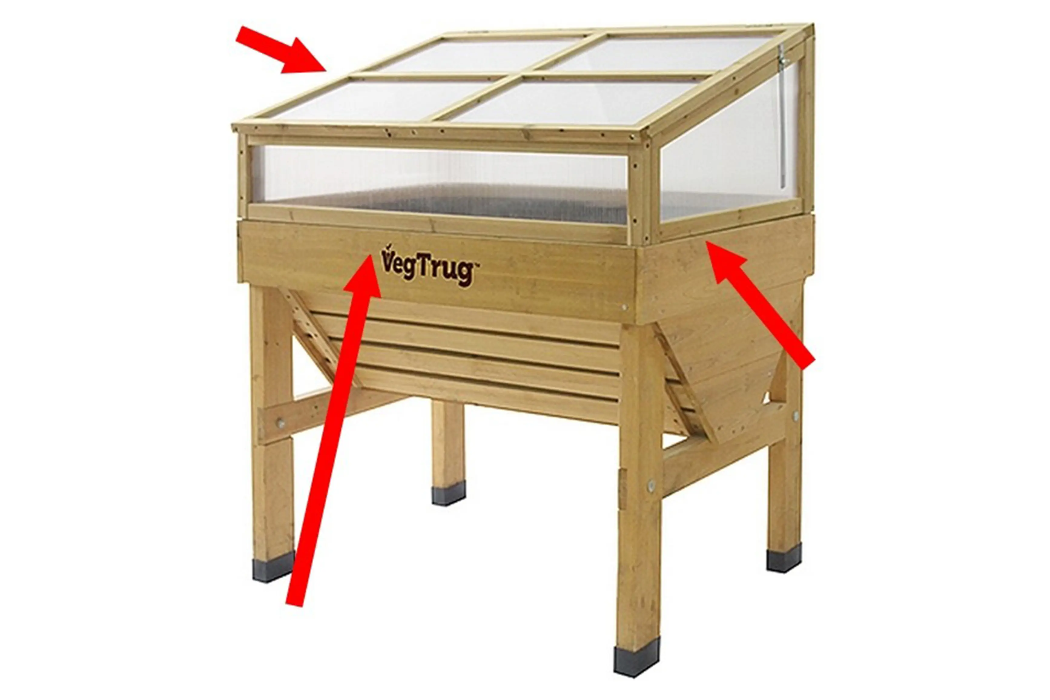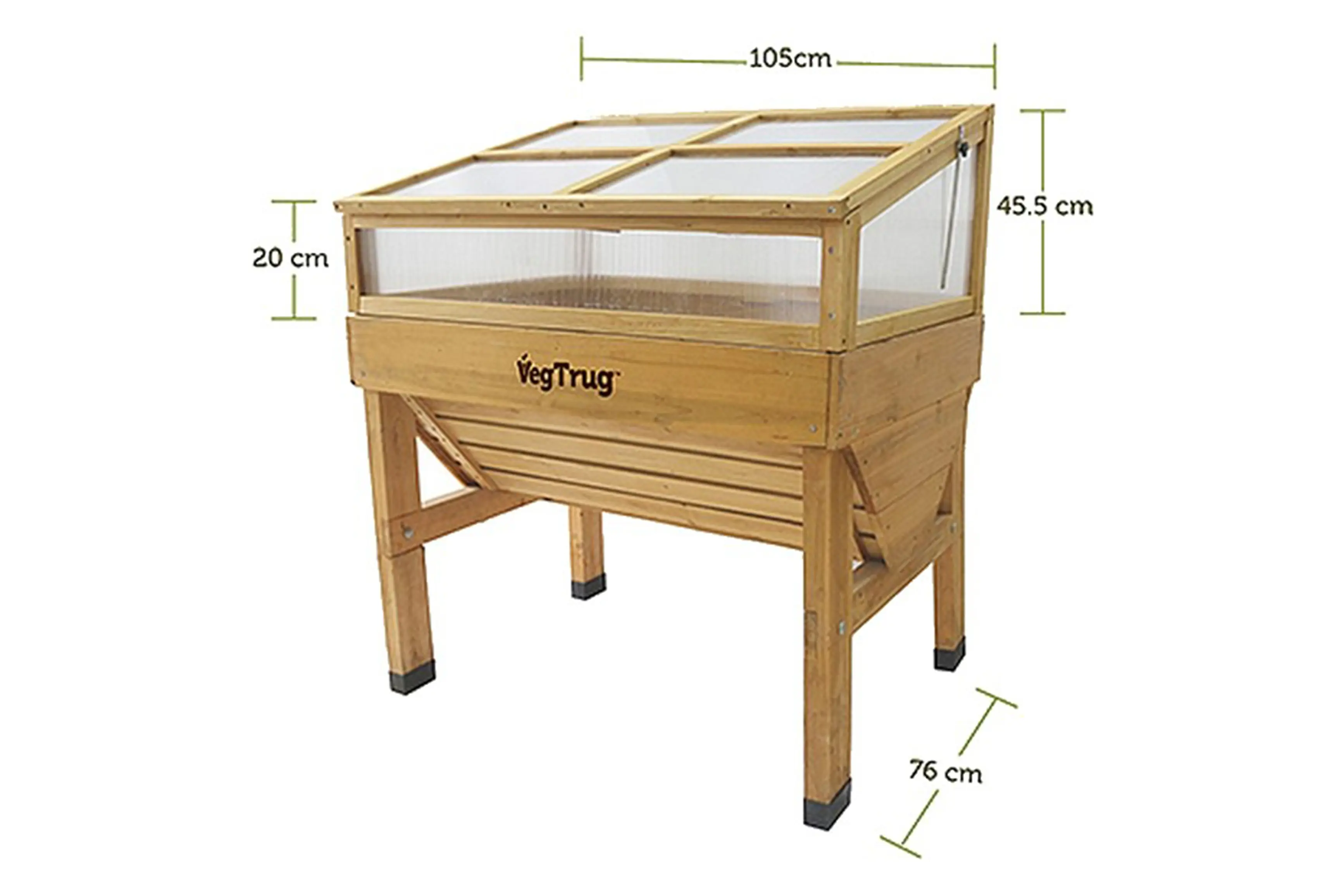 Deze grote koude bak of broeikas van Vegtrug is zeer geschikt om jonge planten in te kweken. Hij laat het nodige licht door en tegelijkertijd worden de planten eronder beschermd tegen guur weer. De bak kan het hele jaar door gebruikt worden voor het kweken van een grote verscheidenheid aan planten, groenten en fruit.