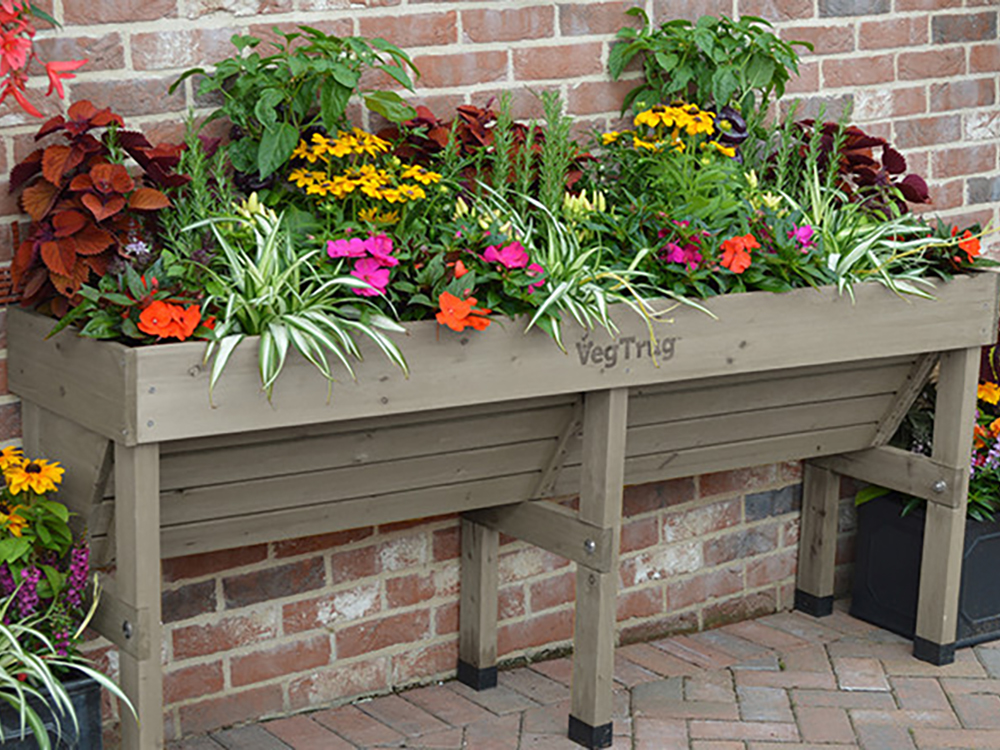 De grote verhoogde plantenbak heeft alle voordelen van een groeibed maar dan binnen het handbereik van jongere en oudere tuiniers zonder dat men zich hoeft te bukken of te knielen.