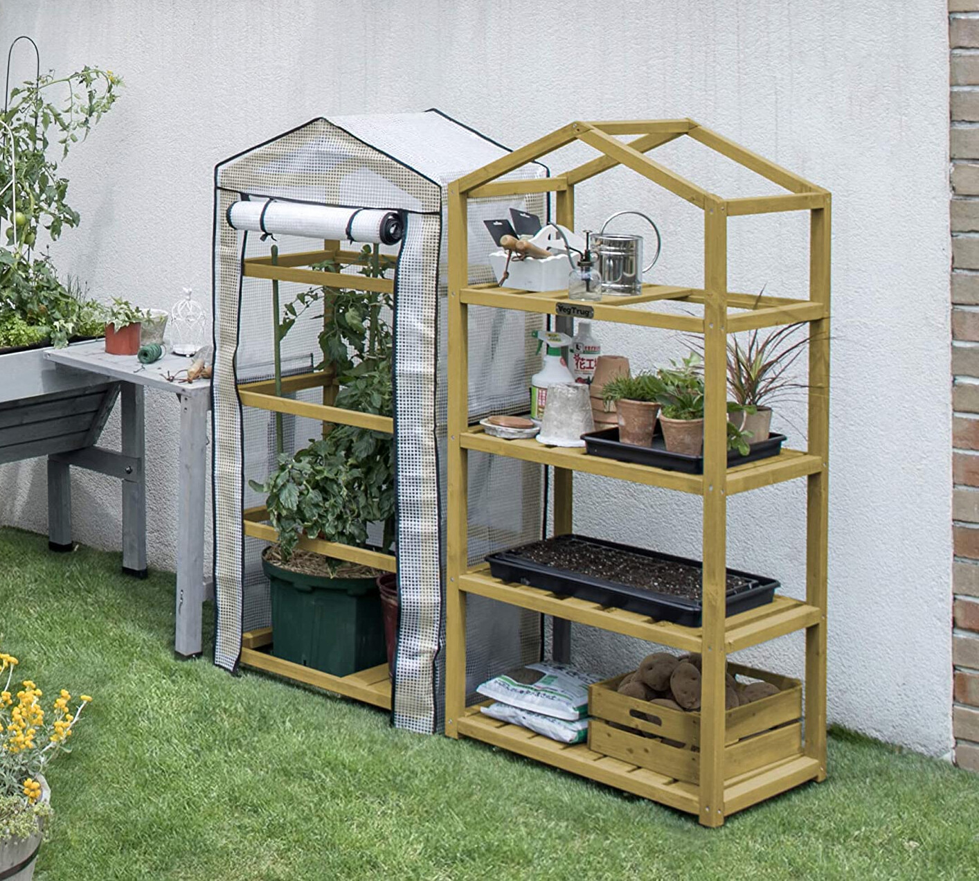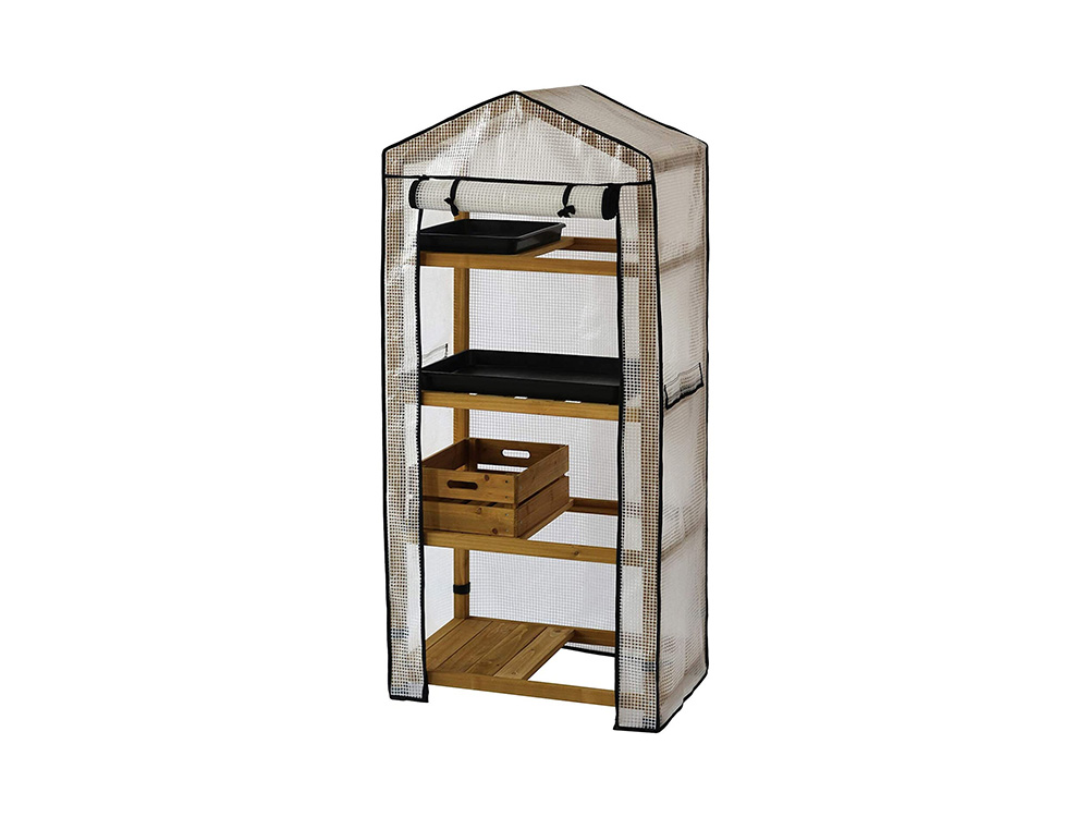 Vegtrug kweekkas met houten frame - 4 rekken