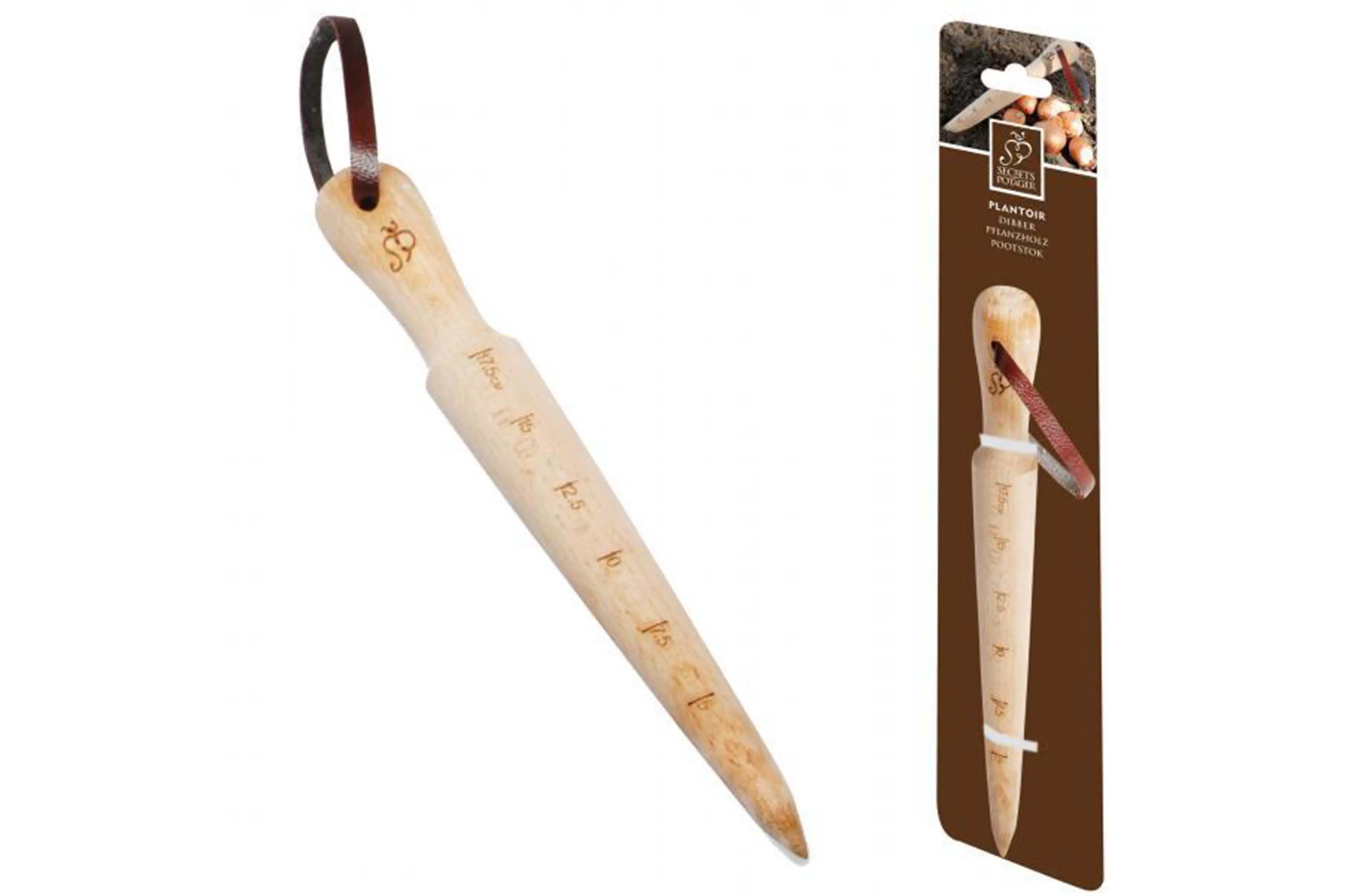 De pootstok van Esschert design is ontworpen om gaten in de grond te prikken voor het planten van bollen, zaailingen, bewortelde stekken of zaden. Het is belangrijk deze op de juiste diepte te planten, vandaar dat er op de pootstok een schaalweergave in cm afgedrukt is als handig hulpmiddel bij het maken van de plantgaten op de juiste diepte.