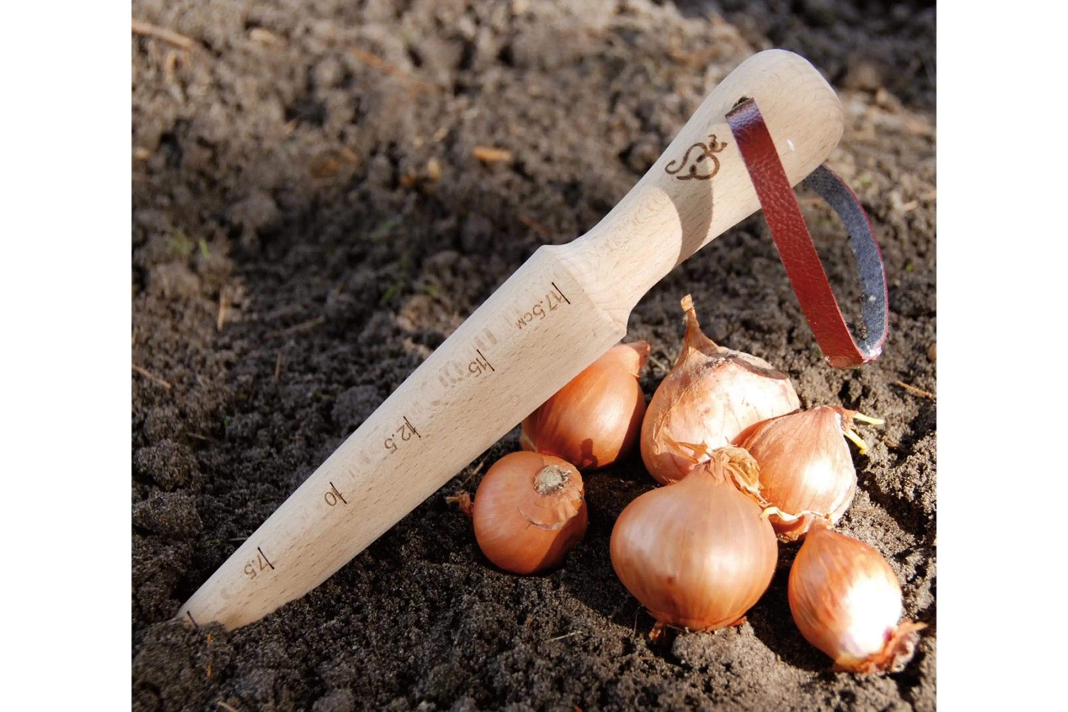 De houten pootstok is ontwikkeld voor vele jaren intensief gebruik. Voorzien van een een ophanglusje.