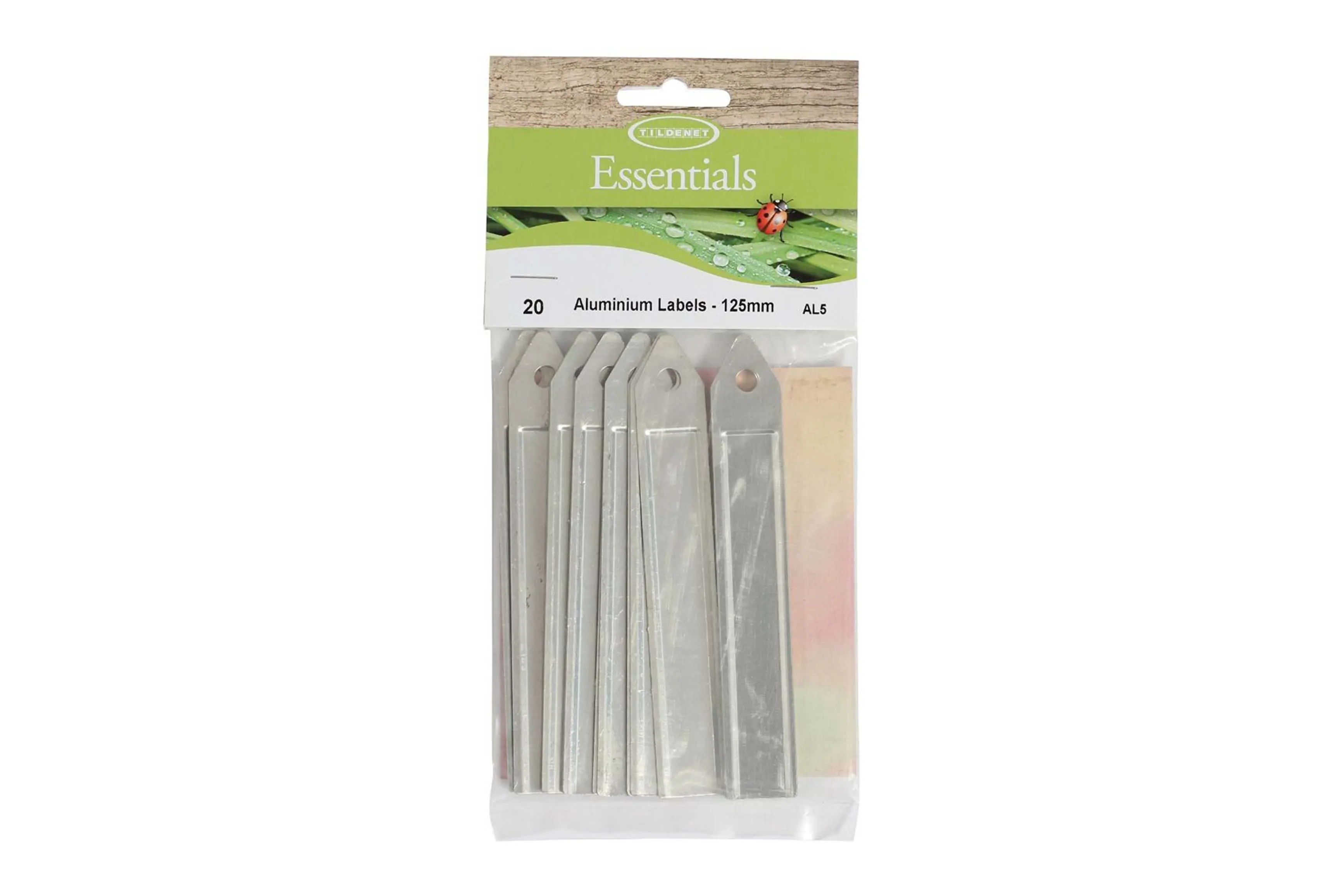 Aluminium labels met opening voor draad of touw en een punt. Op deze sterke etiketten schrijf je vlot de naam van jouw planten, stekken of zaailingen met krijt, stift of potlood. De plantennaam kerven op het aluminium label garandeert een jarenlang leesbaar naametiket.