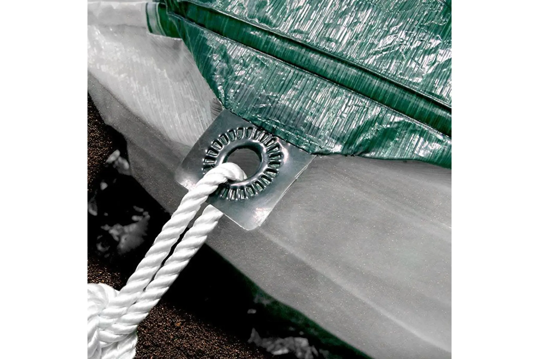 Aan de uiteinden van de tunnel zijn er scheurvrije ogen voorzien met touw om de tunnel vast te zetten. Ook aan de zijkant zijn deze ogen bevestigd. Zo kan je de folietunnel met de meegeleverde pinnen in de grond verankeren. De tunnel en zijn bogen vouwen uit en op zoals een accordeon waardoor het opbouwen of opbergen binnen enkele tellen kan gebeuren.