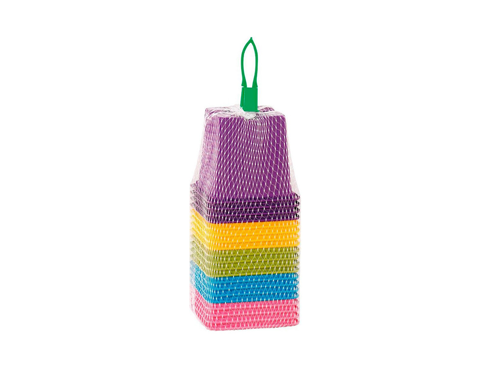 Vierkante 8 cm potten om in te zaaien, stekken, planten en verpotten en dat in maar liefst 5 verschillende kleuren (paars, lichtblauw, roze, geel, lichtgroen). Als de potten bij het verplaatsen in de kas of naar de moestuin door elkaar geraken, dan weet je dankzij de verschillende kleuren steeds welke planten je in welke kleur van pot hebt staan.