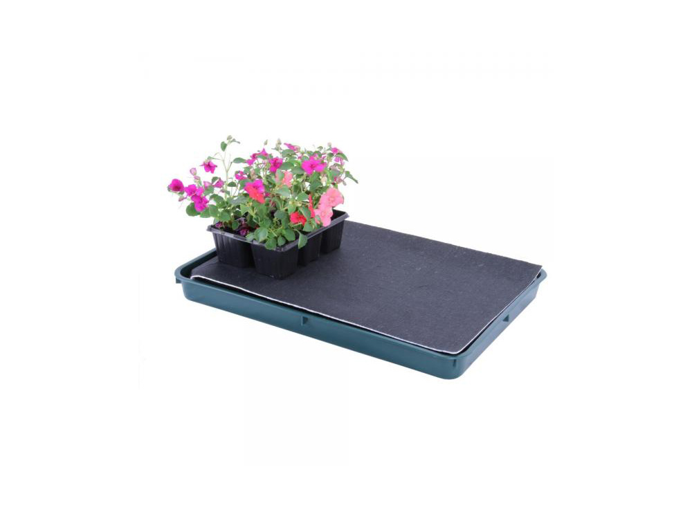 Handige plantentray met waterreservoir en vloeidoek voor de automatische bewatering van al jouw kweekpotten of zelfs kamerplanten als je op reis bent. Dankzij de capillaire werking van het vloeidoek krijgen kweekbakken en potplanten, die bovenop de schaal staan, automatisch water gedurende ongeveer 14 dagen.