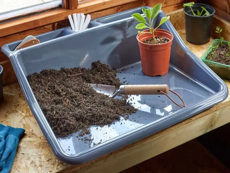 Een nette en opgeruimde werkplek voor allerlei tuinklusjes.Ideaal voor het zaaien en verpotten.