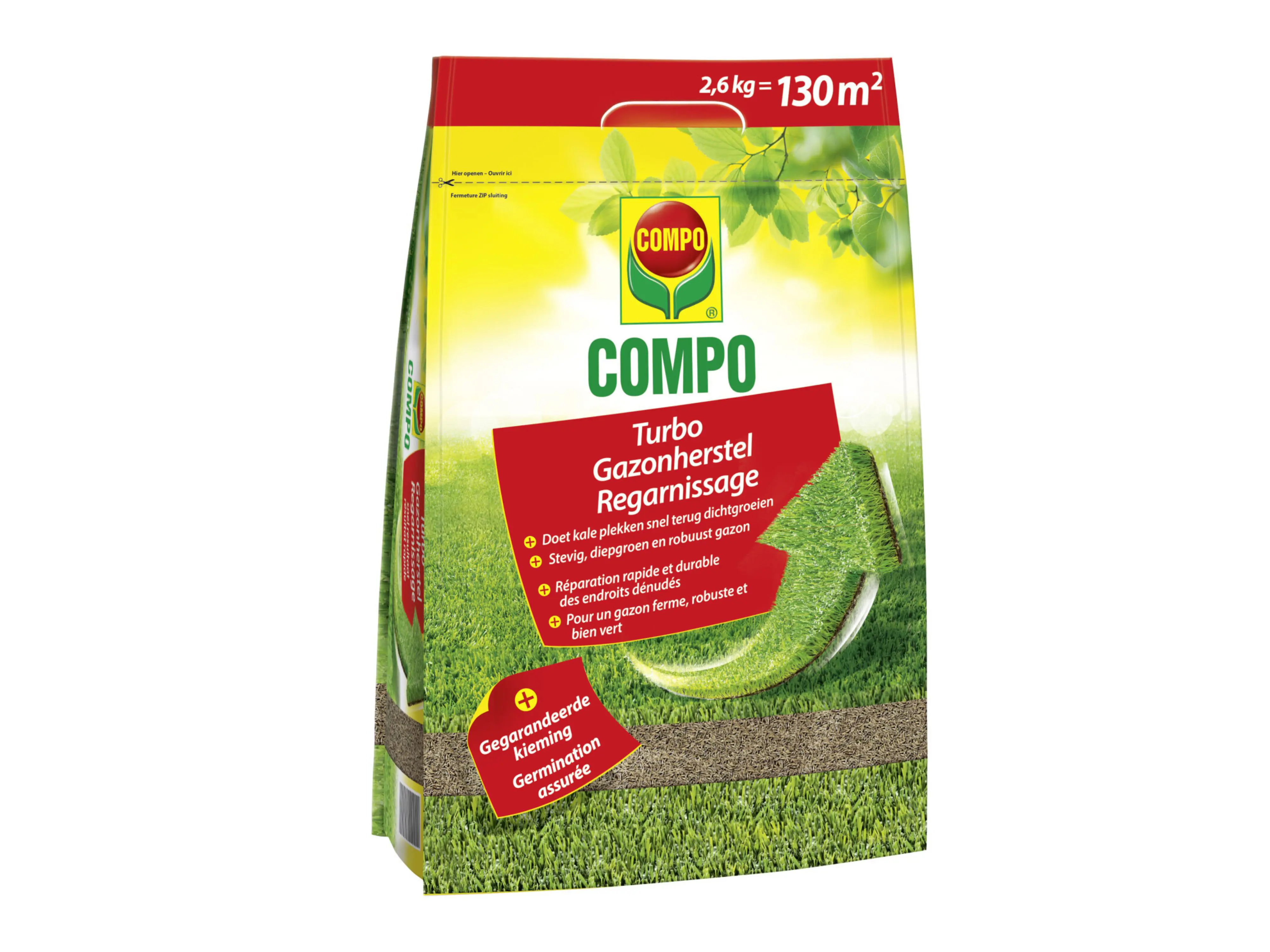 Compo Turbo Gazonherstel is het ideale herstel graszaad om snel kale plekken in het gazon op een betrouwbare manier te herstellen. Lolium Perenne is een kwalitatief en snel ontkiemend graszaad, waardoor het gazon snel opnieuw betreden kan worden. Het vormt lange uitlopers die zich breed verspreiden en zo een dichte grasmat vormen.