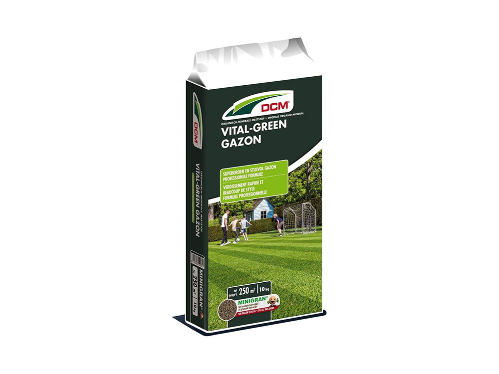 Vital-Green van DCM is een professionele formule voor een supergroen en stijlvol gazon. Evenwichtige gazonmeststof die zorgt voor een onmiddellijke én aanhoudende groei van het gras, verrijkt met magnesium en ijzer voor een intens diepgroene graskleur gedurende 100 dagen.