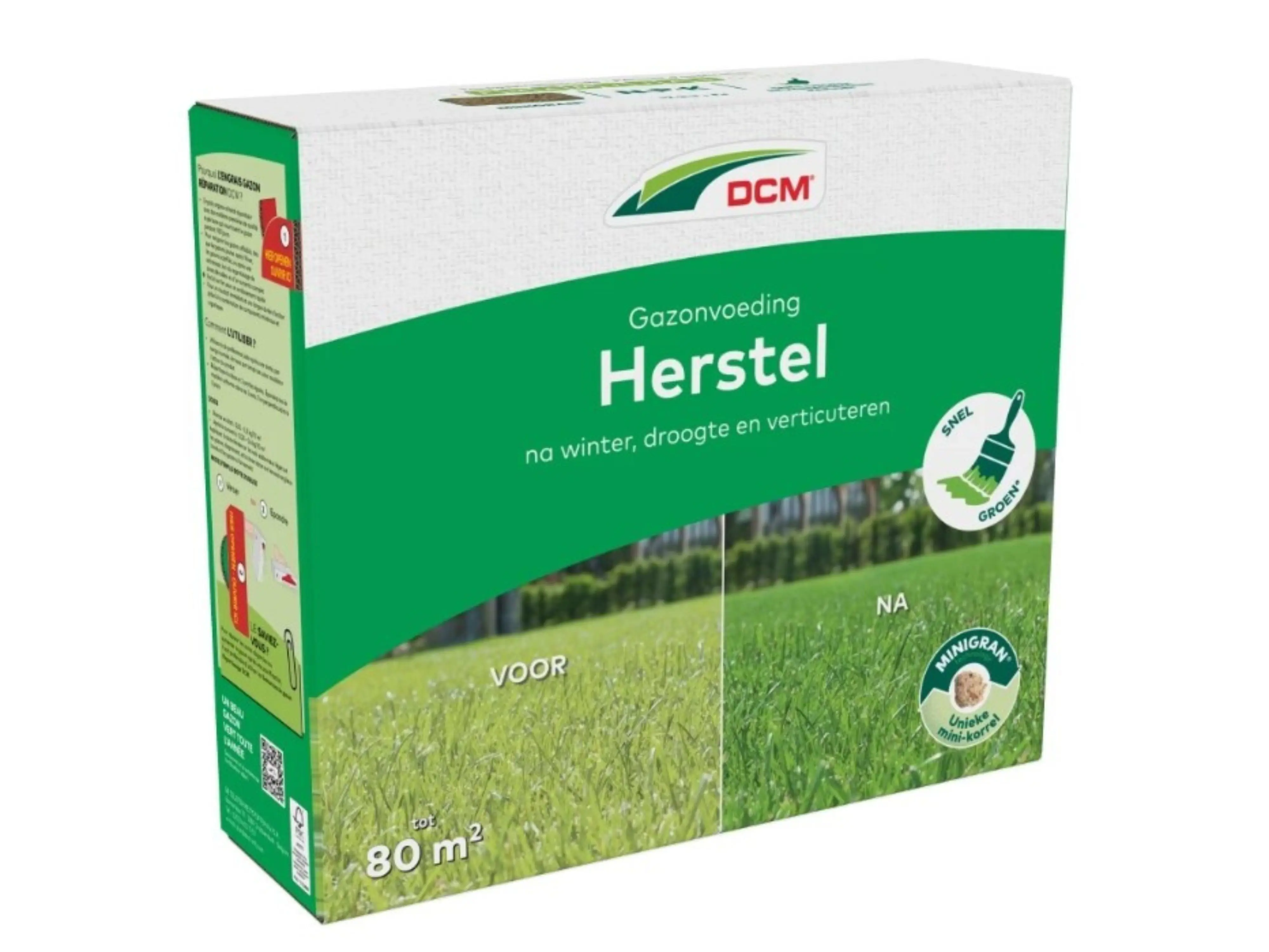 Na een lange winter zien er de meeste gazons verbleekt en schraal uit. Ook na het verticuteren in het voorjaar of na een droogteperiode kan het gazon er beschadigd en troosteloos bijliggen. DCM Gazonvoeding Herstel zorgt voor een snel herstel van het grasveld. Het is ook effectief bij het inzaaien van kale plekken of algemene doorzaai.