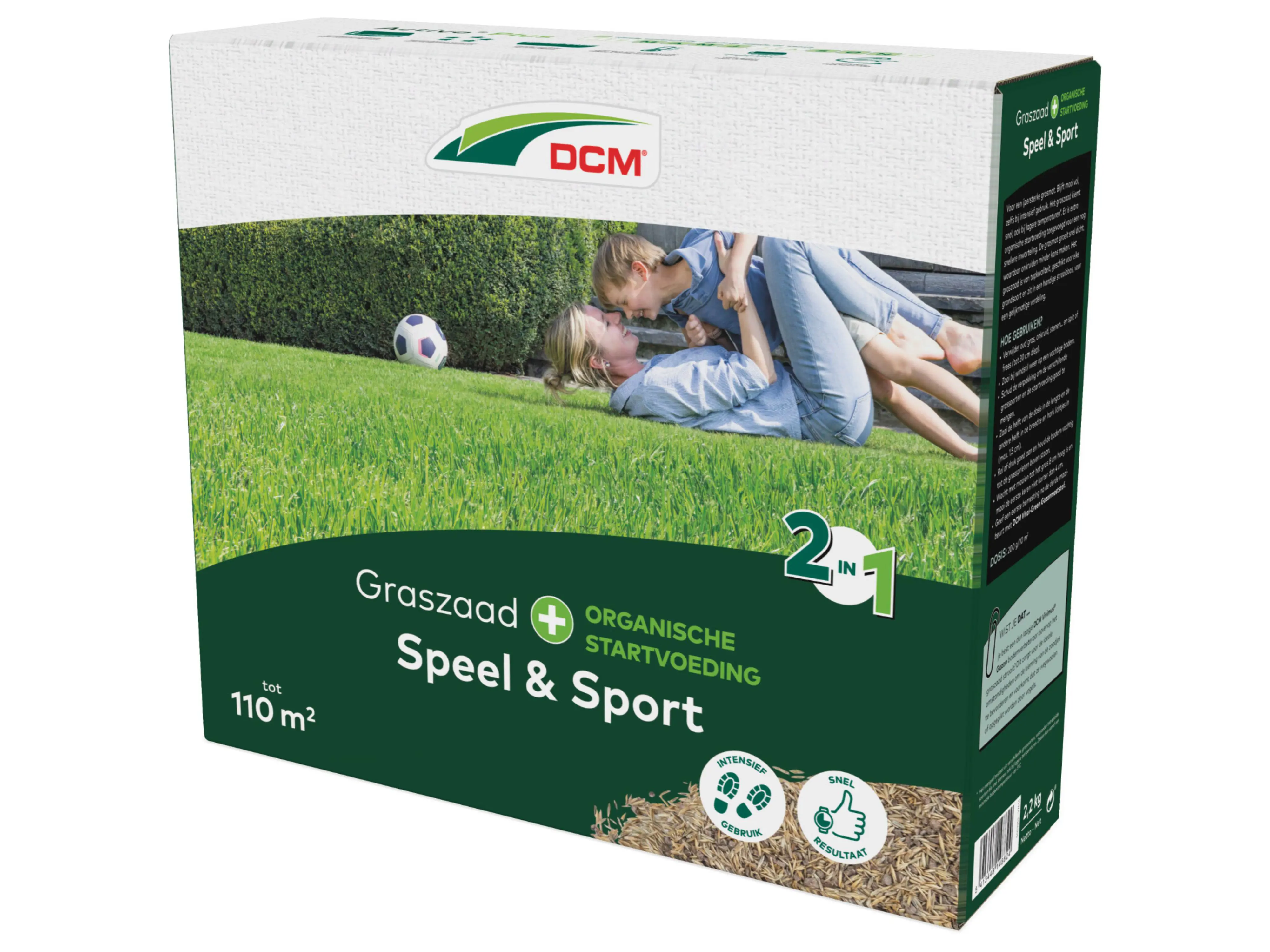 Graszaad voor speel- en sportgazon, gemengd met organische startvoeding. DCM Graszaad Plus Speel & Sport zorgt voor een ijzersterke grasmat en blijft mooi vol, zelfs bij intensief gebruik.