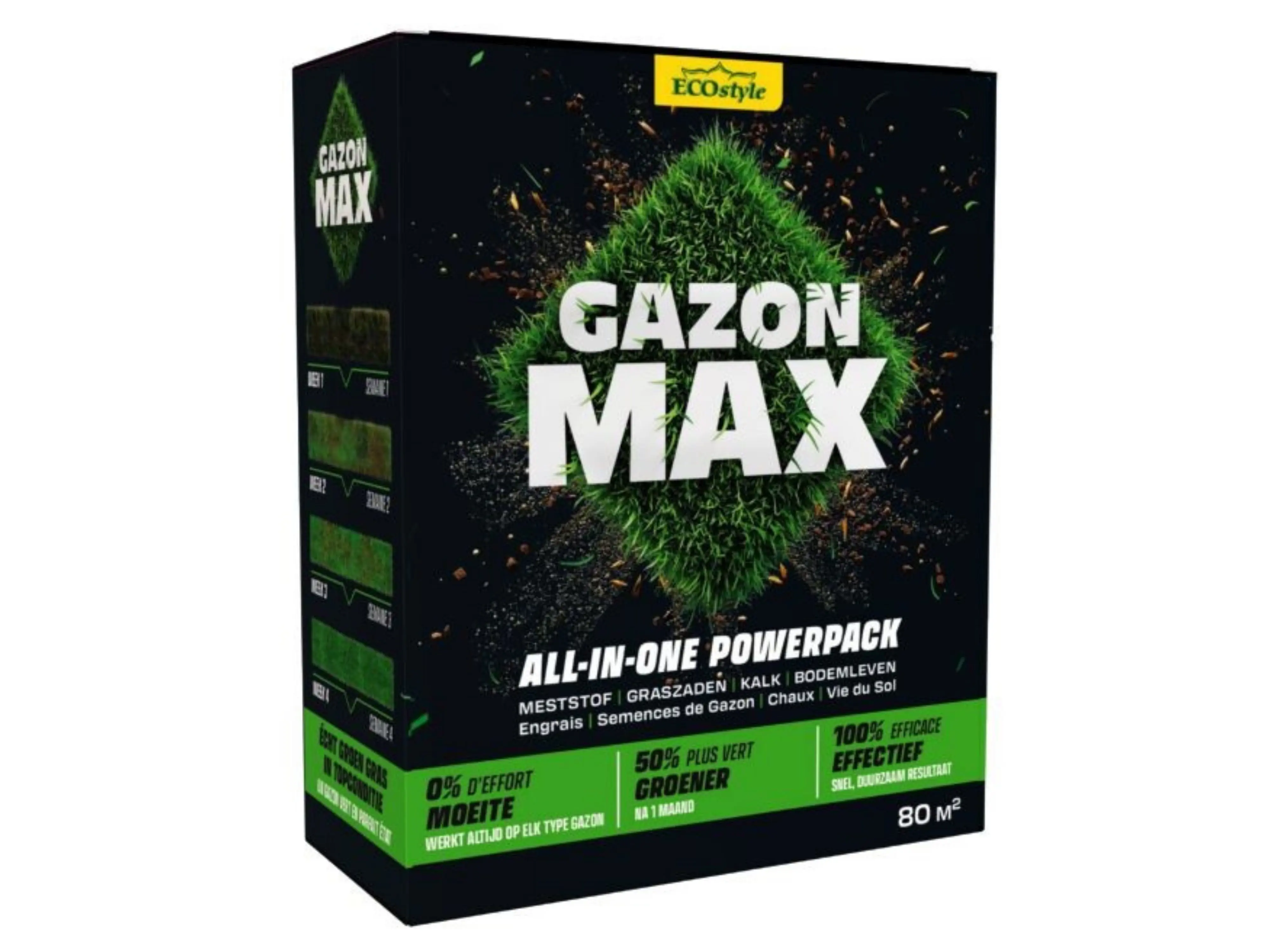 GazonMax van Ecostyle is de ultieme all-in-one oplossing voor je gazon! Het is een krachtige formule die meststoffen, biologische graszaden, waterkalk en bodemleven combineert. Dit veelzijdige product is het hele jaar door te gebruiken en zorgt voor een snel resultaat. Na slechts één toepassing geniet je van een sterker, voller en groener gazon.