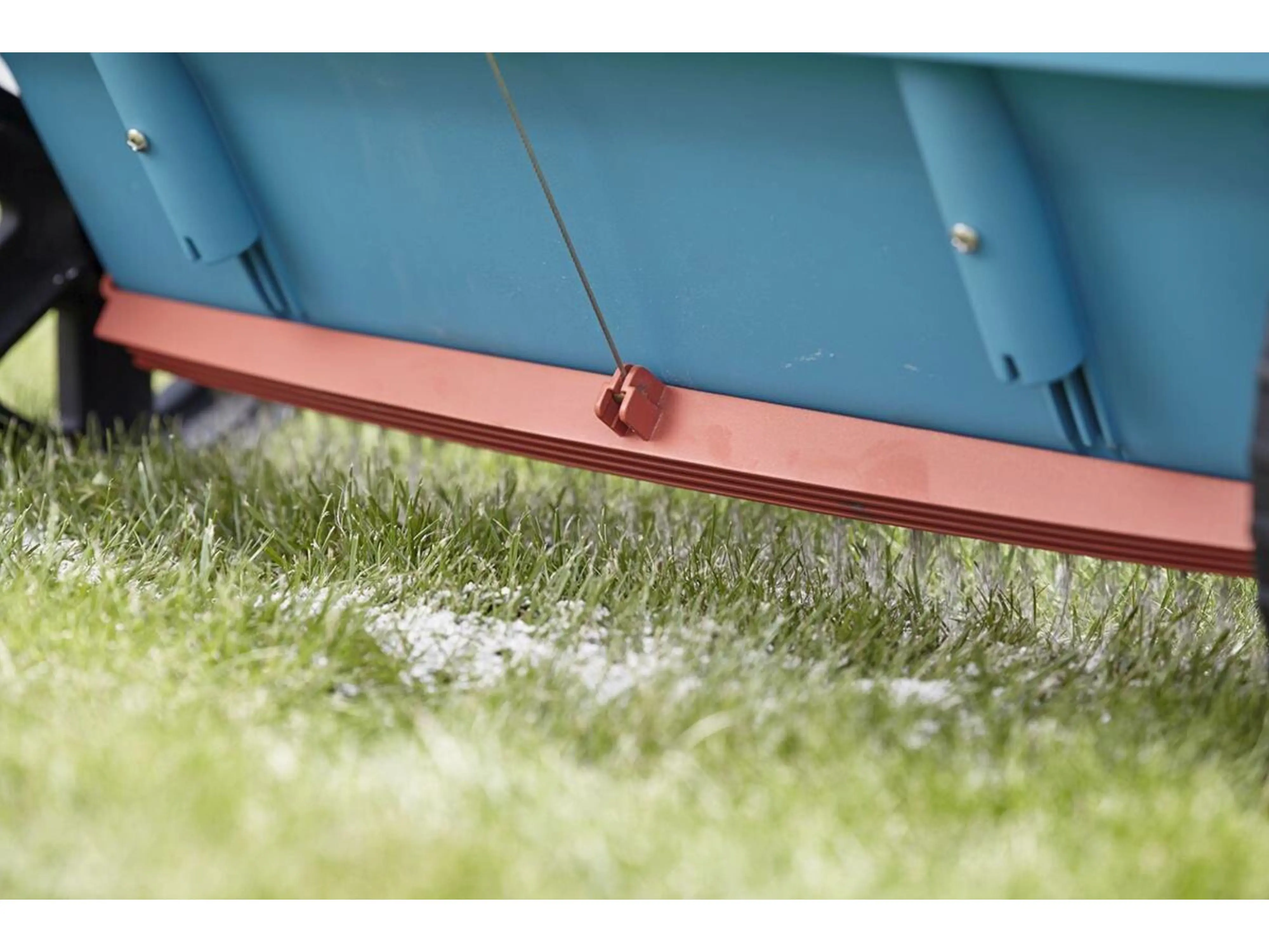 De strooiwagen is voorzien van een ergonomische handgreep met een praktische open/sluit-functie waarmee je de hoeveelheid strooigoed nauwkeurig kunt doseren zonder dat je hoeft te bukken. Dankzij de verspreidingsrol wordt de meststof of strooizout gelijkmatig verspreid en komt het altijd op de gewenste plek terecht. De gepatenteerde afsluitstrip van zachte kunststof zorgt ervoor dat er na gebruik geen strooigoed wordt gemorst.