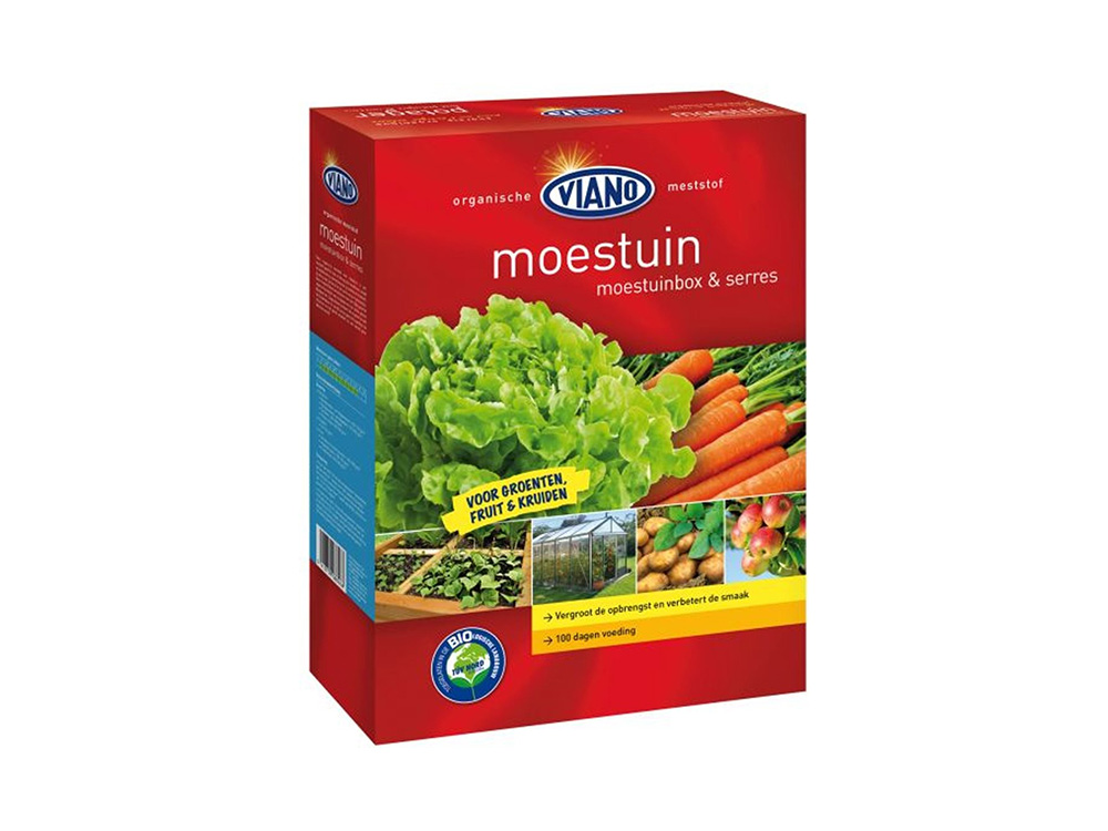 Organisch minerale meststof voor moestuin, moestuinbox & serres voor bladgroenten, wortel-, knolgewassen, aardappelen, tomaten, peulvruchten, kruiden, fruit, aardbeien, fruitbomen, etc. Vergroot de opbrengst en verbetert de smaak van groenten, fruit & kruiden.