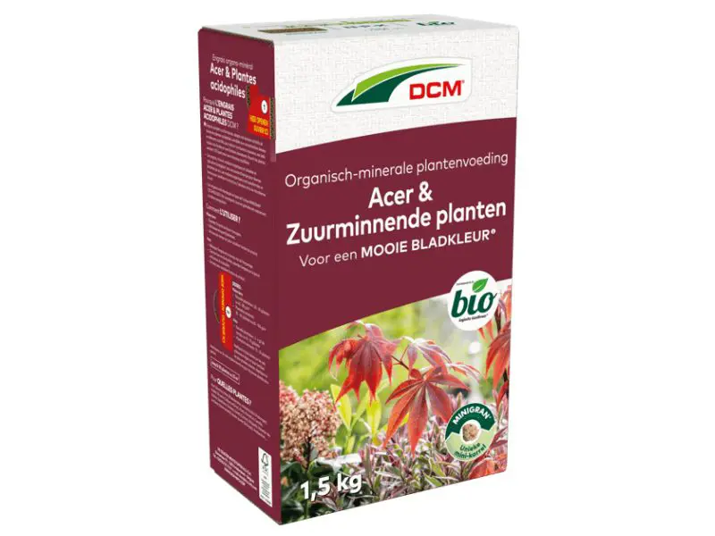 Specifieke samenstelling voor het bemesten van alle zuurminnende planten zoals acer, skimmia, hebe, heide, camelia, …
