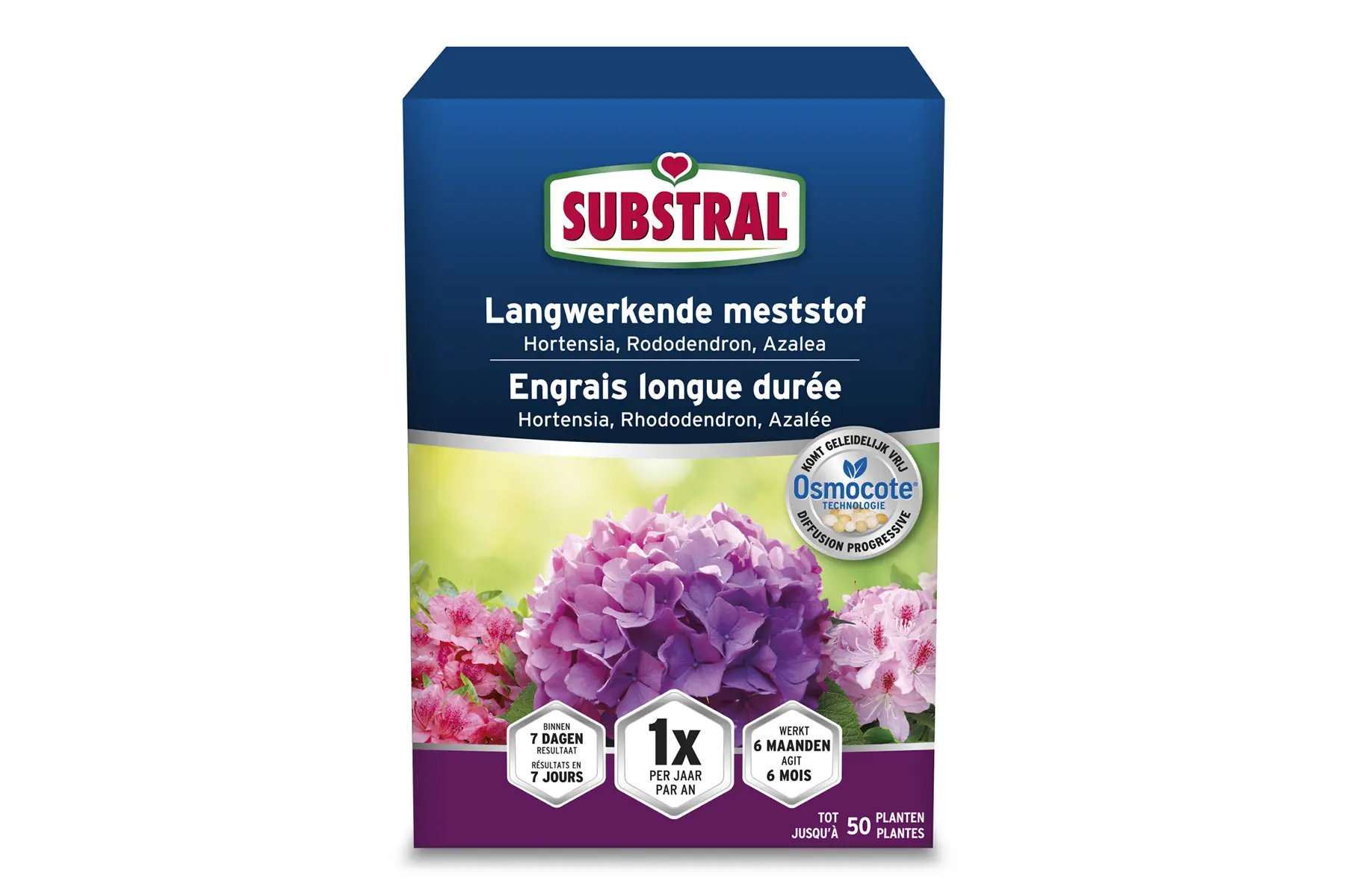 De langwerkende meststof van Substral werd speciaal ontwikkeld voor Hortensia's en andere zuurminnende planten die zich moeilijk ontwikkelen in kalkgrond, zoals Rododondron, Azalea, Camelia, Magnolia, rotsheide, aardbeiboom en andere heideachtige planten. Substral Osmocote kan zowel voor planten in de volle grond als voor planten in potten of bloembakken gebruikt worden.
