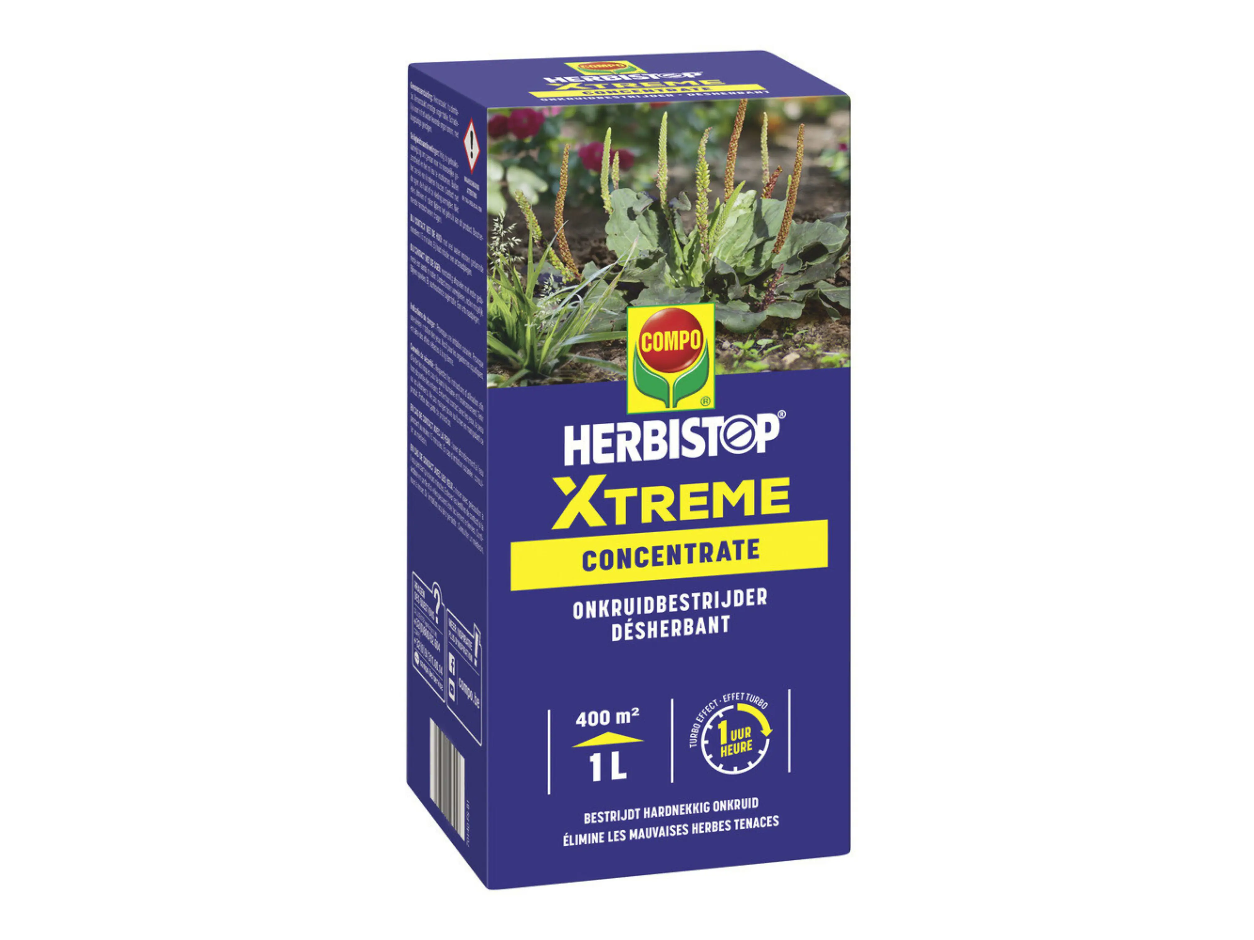 Herbistop Xtreme van Compo is een geconcentreerde onkruidbestrijder met de krachtigste formulering op de markt op basis van pelargonzuur, een werkzame stof uit de natuur. Het is geschikt voor de bestrijding van eenjarige grasachtige en eenjarige tweezaadlobbige onkruiden tussen sierplanten, bomen en heesters, fruitbomen en groentegewassen, of ter voorbereiding voor het zaaien of het planten.