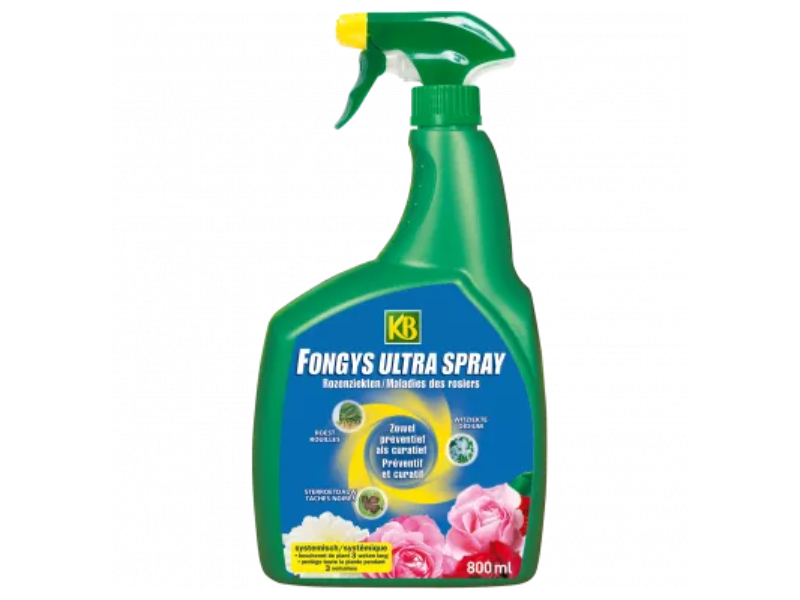 KB Fongys Ultra Spray is de perfecte oplossing voor de bestrijding van witziekte, zwarte bladvlekken en roest op rozen en sierplanten. Het middel heeft een systemische werking en kan zowel preventief als curatief gebruikt worden. Het blijft een lange tijd actief; het wordt immers door de bladeren van de plant opgenomen en via het sap over de volledige plant verspreid.