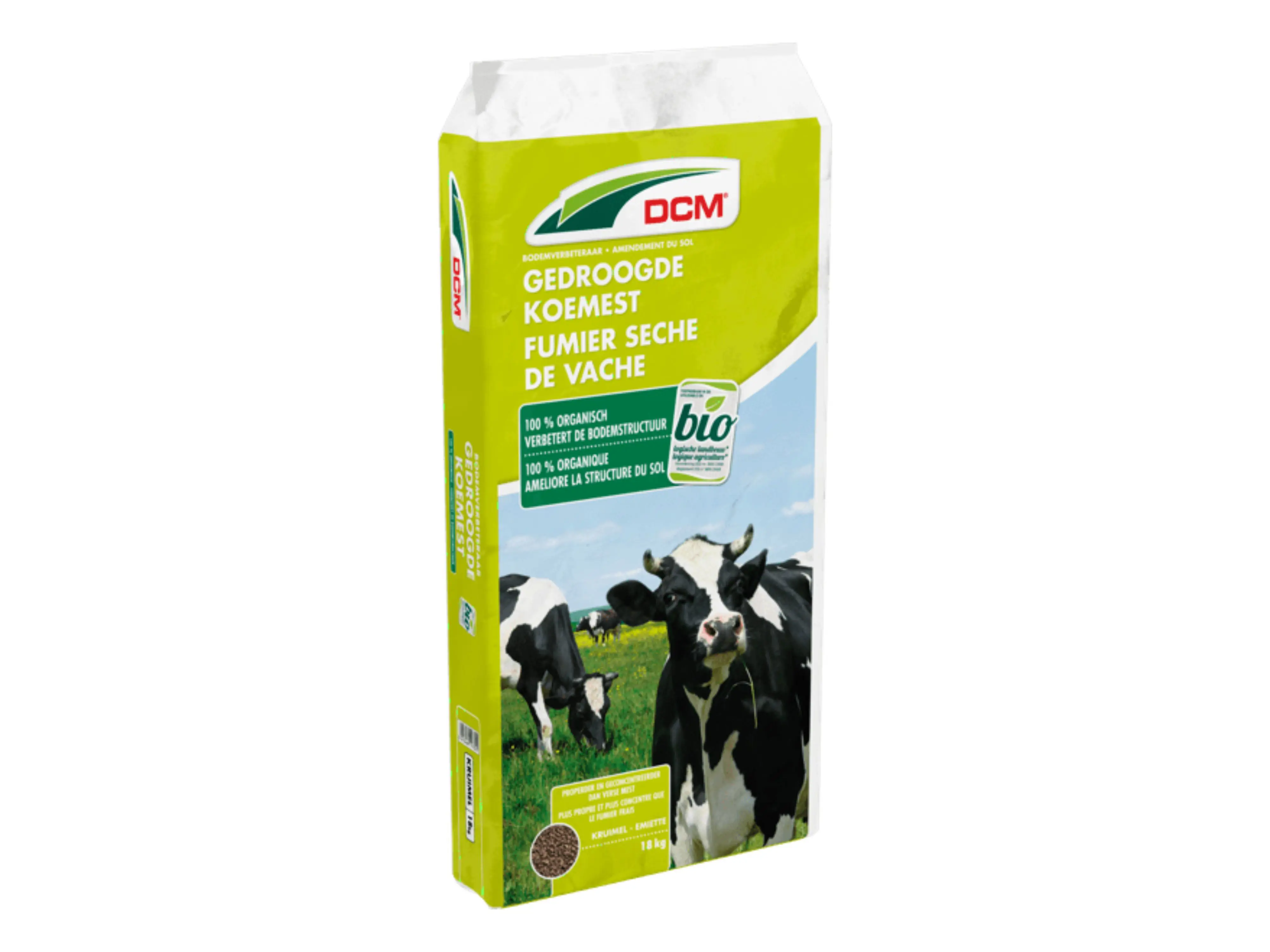 Bodemverbeteraar die de grond verrijkt met humus voor een betere structuur. Gedroogd product, vrij van onkruidzaden, ziektekiemen en insecten en dus volledig veilig voor grond en planten. Gebruiksvriendelijker en properder dan verse mest. Toepasbaar in de biotuin.