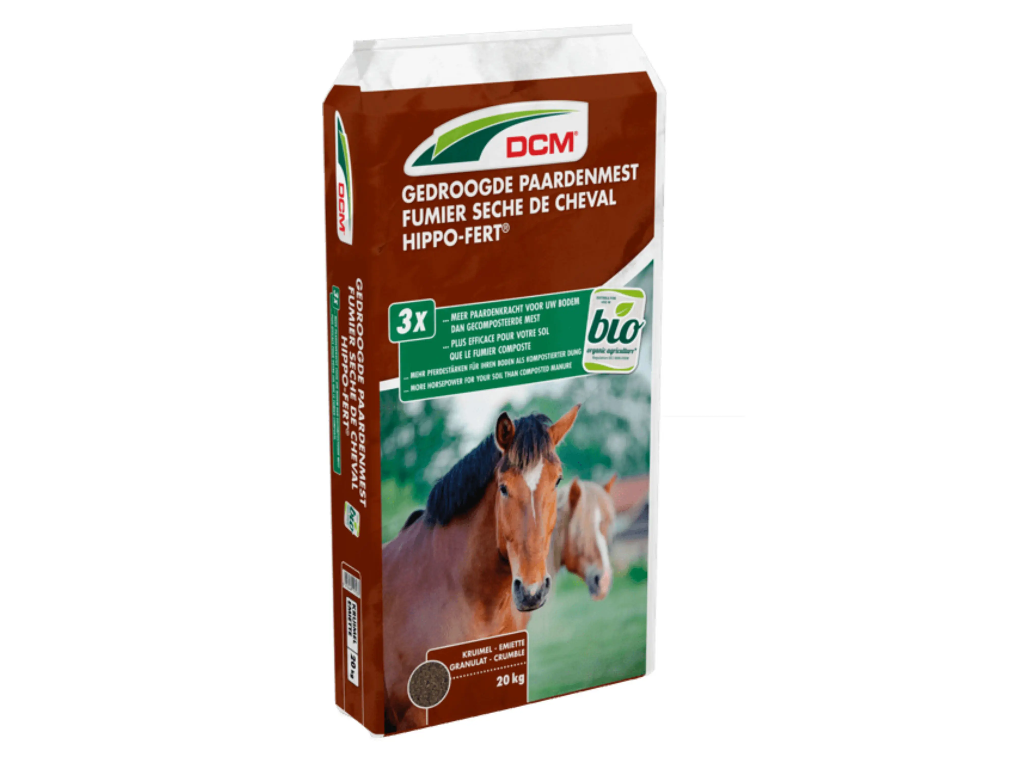 Product op basis van gedroogde paardenmest. Verrijkt de grond met humus voor een betere bodemstructuur. Gedroogd product, vrij van onkruidzaden, ziektekiemen en insecten en dus volledig veilig voor grond en plant. Gebruiksvriendelijker en properder dan verse mest. Toepasbaar in de biotuin.