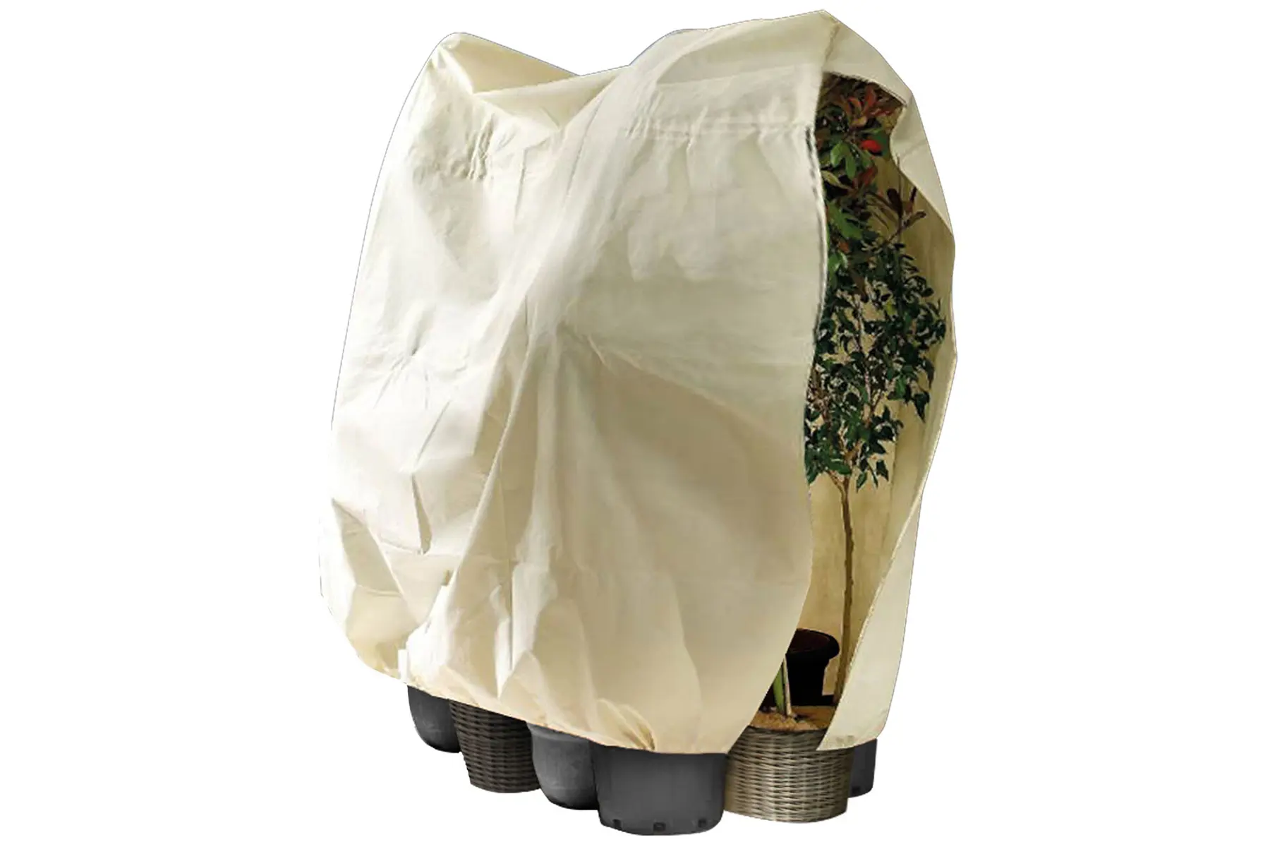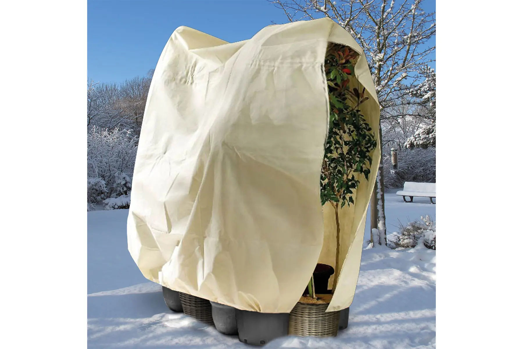 De beschermhoes is voorzien van een rits waardoor je de planten snel kan inpakken, controleren en terug kan uitpakken. Met de voorziene trekkoord kan je de hoes stevig rond de pot aanspannen. Dankzij de rits en de trekkoorden zit de thermohoes als gegoten rond jouw planten zodat hevige wind er (bij het correct aanbrengen) praktisch geen vat op kan krijgen. Bij gewone vliesdoeken is dit tot ieders frustratie vaak wel het geval.