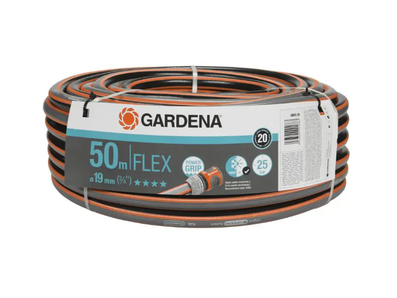 De Gardena Comfort FLEX tuinslang is uitgerust met een Power Grip profiel, de perfecte verbinding tussen de tuinslang en de koppeling. De Comfort FLEX is bijzonder drukbestendig en vormvast dankzij de hoge kwaliteits koolstof versterkende spiraal structuur. Ze knikt en verdraait niet en glijdt bovendien makkelijk langs obstakels.