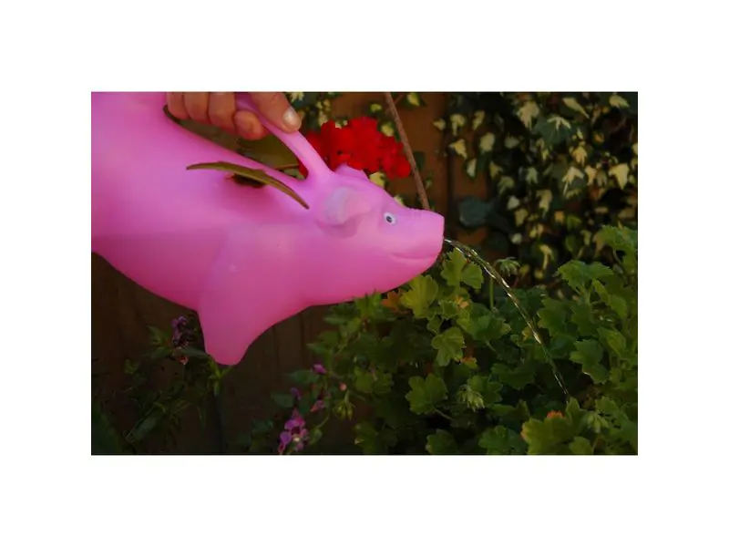 Trendy roze ‘Vliegend varken’ gieter met meedraaiende pupillen en goudkleurige vleugels. “If pigs could fly” is een bekende uitdrukking om in een grappige manier iets te zeggen dat het onmogelijk is. Deze plastic gieter is uitgevoerd in de vorm van een gevleugelde varken. Door de opening in de mond is het doelgerichte water geven aan planten geen probleem.