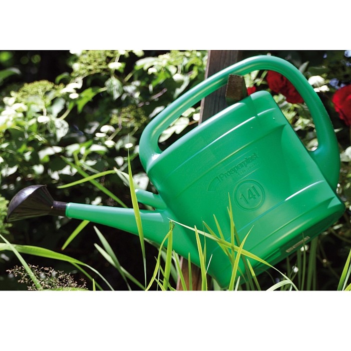 Een handige gieter in kunststof met een inhoud van 14 liter om buiten te gebruiken.
