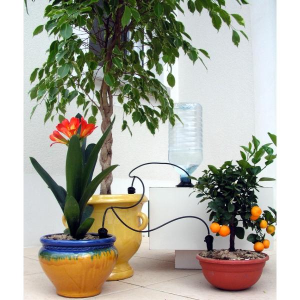 Dit handige druppelbevloeiingssysteem is te gebruiken op petflessen met een inhoud tot 2 liter. Met dit systeem kan je 3 verschillende kamer- en terrasplanten tot twaalf dagen water geven afhankelijk van het formaat en de soort van de plant, ideaal voor tijdens de vakantie. Dit druppelsysteem is uiteraard ook toepasbaar in de moestuin voor het bewateren van tal van gewassen. De kwalitatieve regelbare druppelaar heeft maar liefst 11 standen!