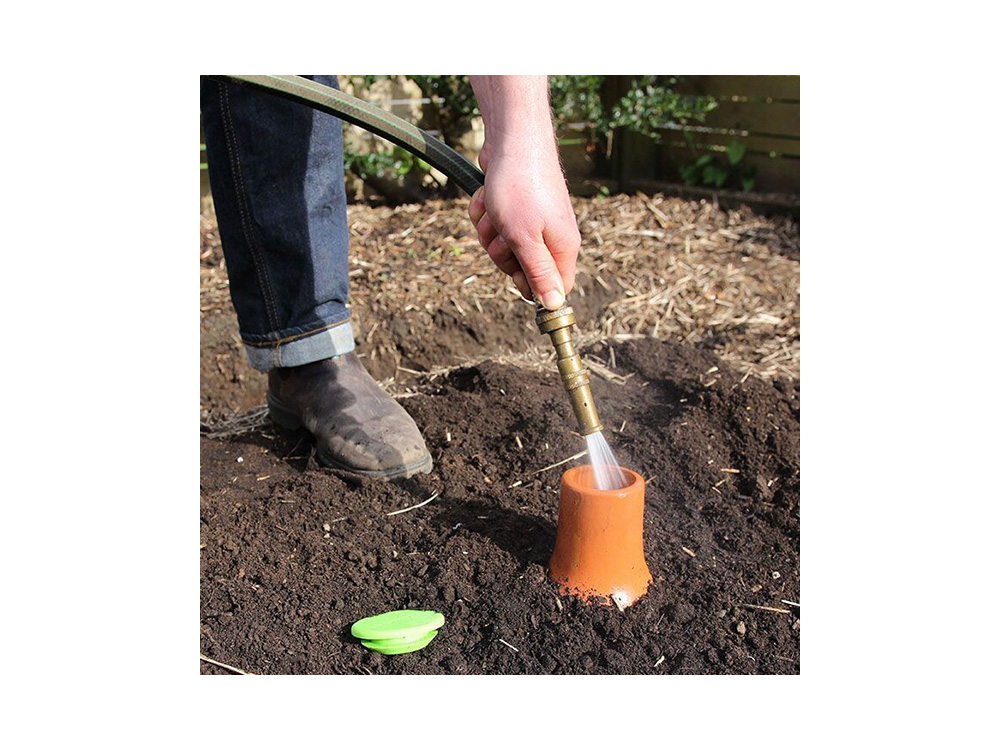 Ideaal voor in de moes- of siertuin maar de kruik kan ook in bloembakken geïntegreerd worden. Je dient enkel de kruik binnen de paar dagen te vullen. Dit bespaart je heel wat tijd maar ook water!