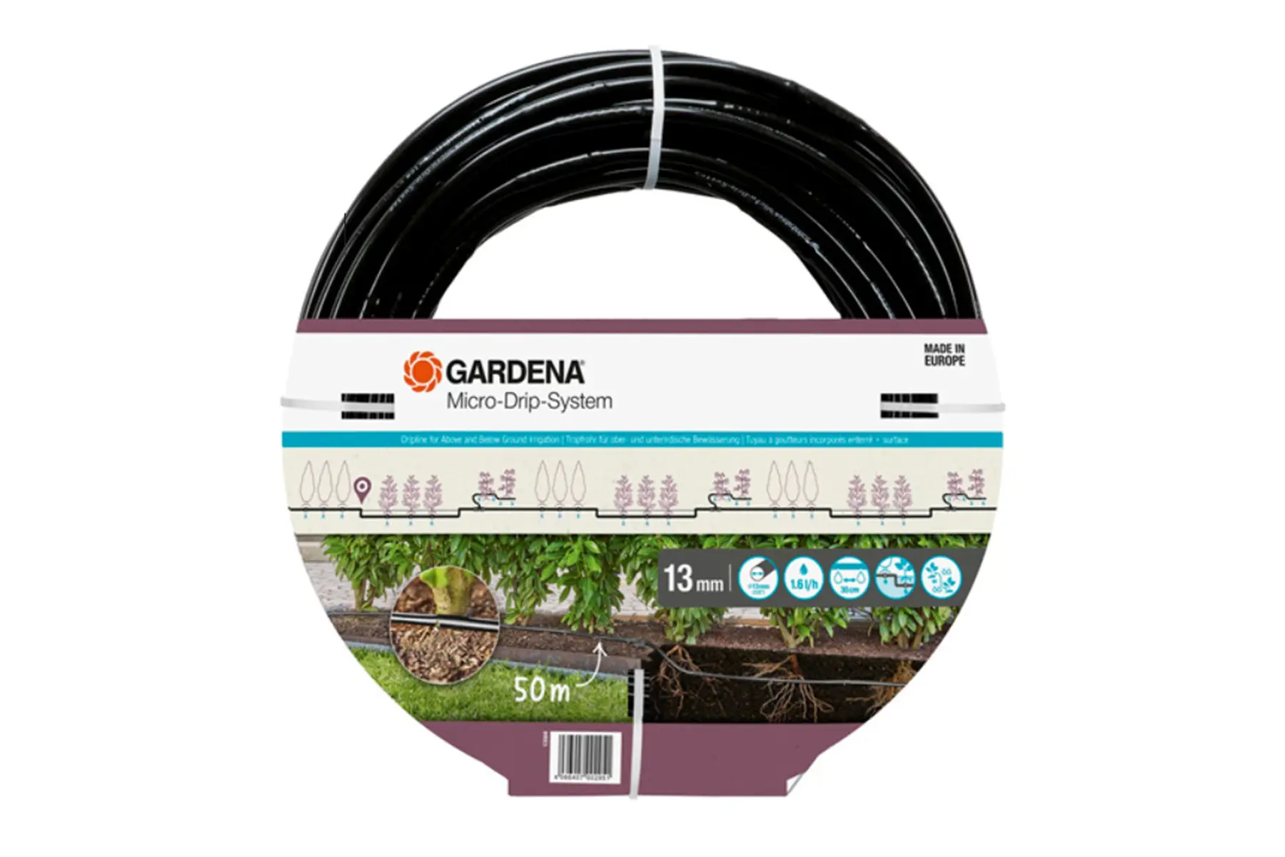 Deze Gardena druppelslang met geïntegreerde druppelaars is ideaal om plantenrijen zoals heggen, struiken en buxussen te bewateren. De druppelbuis kan zowel onder- als bovengronds geïnstalleerd worden. Dankzij de speciale Self-Clean-functie met labyrinttechnologie en wortelscherm raakt de druppelslang niet verstopt, ook als je hem onder de grond monteert.