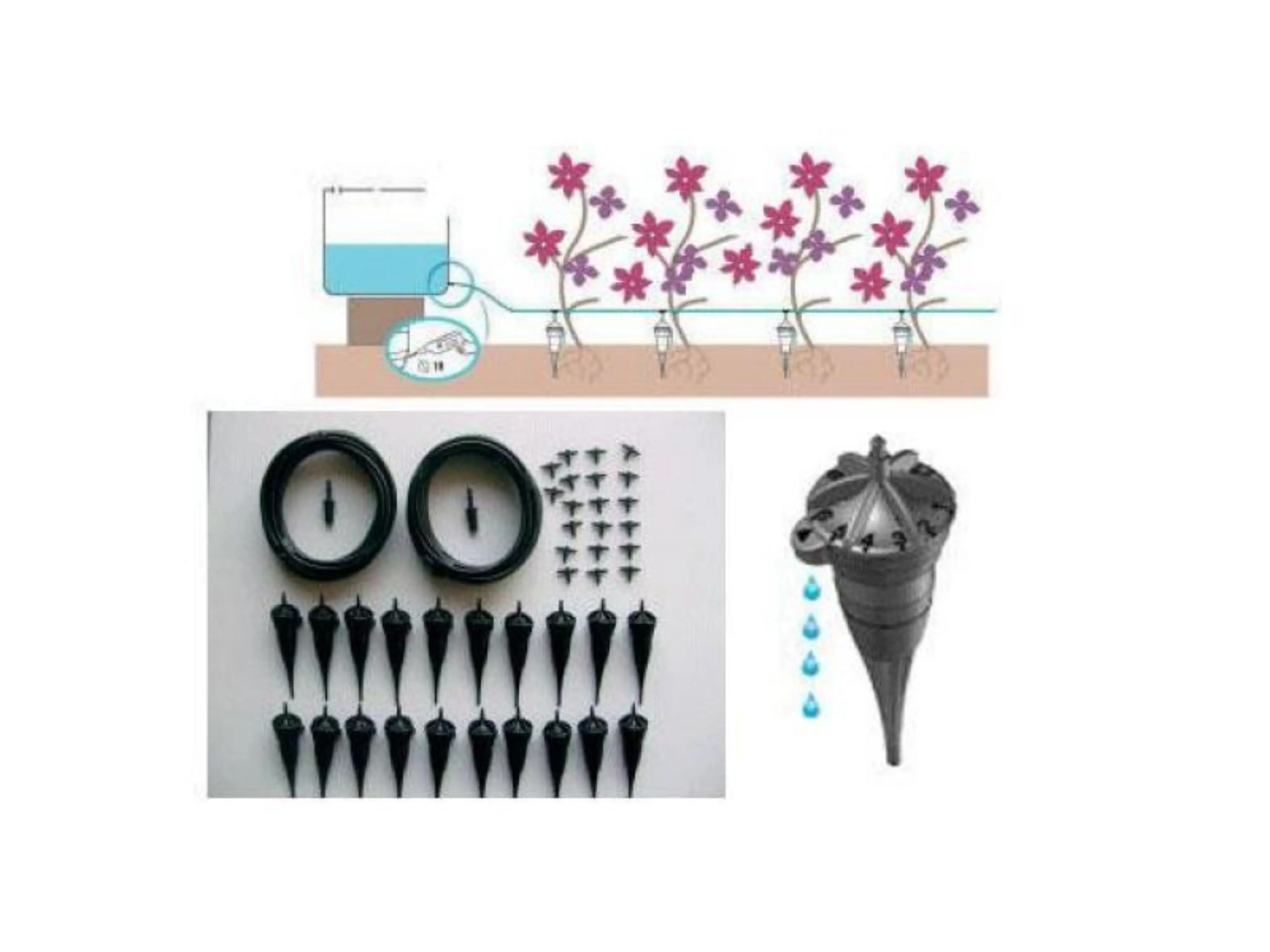 Met dit watergeefsysteem kan je de druppelbevloeiing van al jouw planten naar eigen wens regelen. Met behulp van de meegeleverde aansluitstukken kan je de waterdarm aansluiten op een waterton of -reservoir van 5 tot 5000 liter.