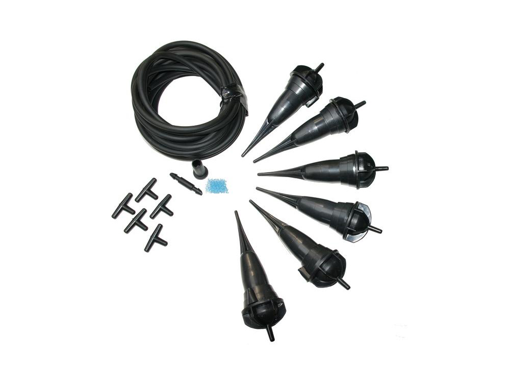 Op de waterdarm sluit je zelf de regelbare druppelaars aan op de gewenste afstand. Elke druppelaar is afzonderlijk regelbaar volgens de waterbehoefte van de plant en heeft 11 standen.