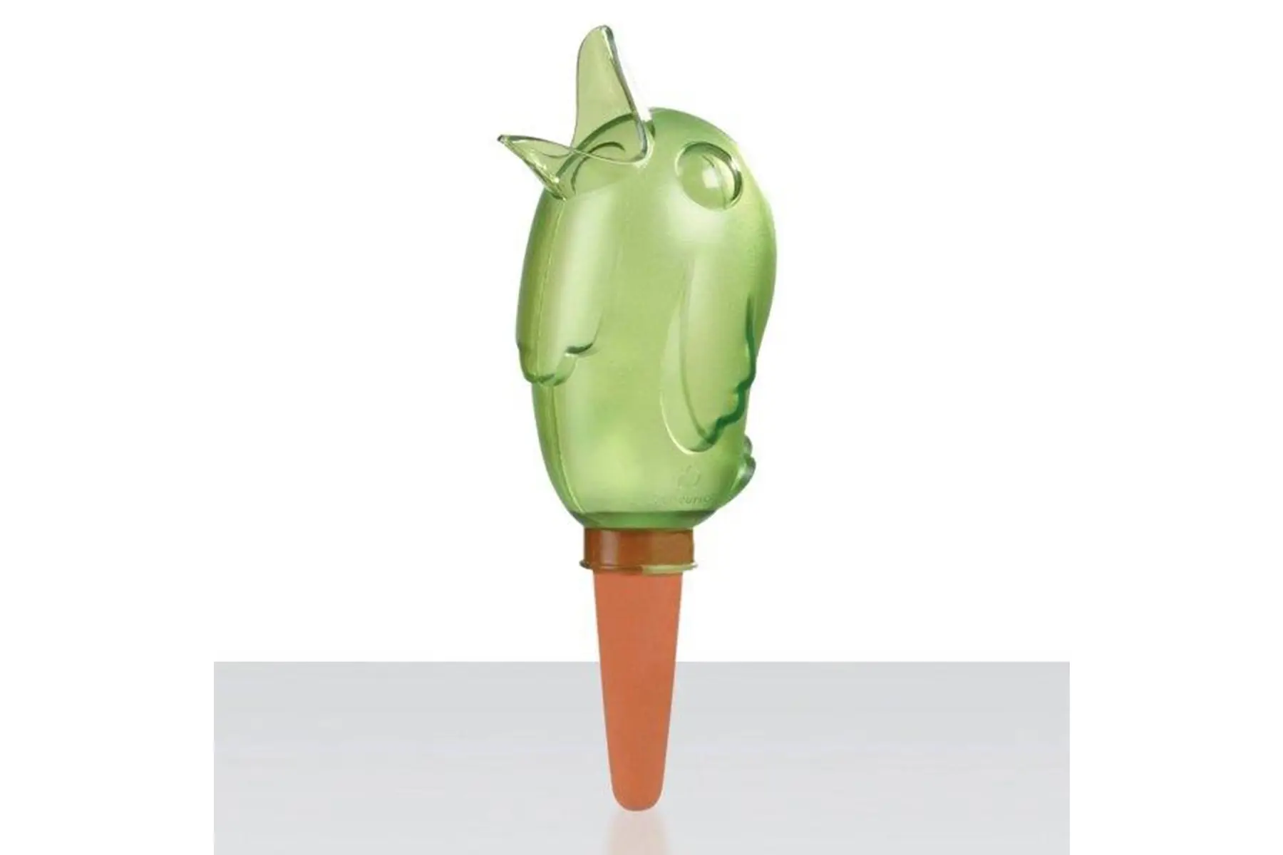 Prik de terracotta prikker in de potgrond van jouw kamer- of potplant en vul het kunststof waterreservoir met water via het vogelbekje. Het water wordt langzaam aan de potgrond vrijgegeven en voorziet op die manier jouw planten tot 4 dagen van water. Het vogeltje is transparant waardoor je makkelijk ziet wanneer je water bij kan geven.