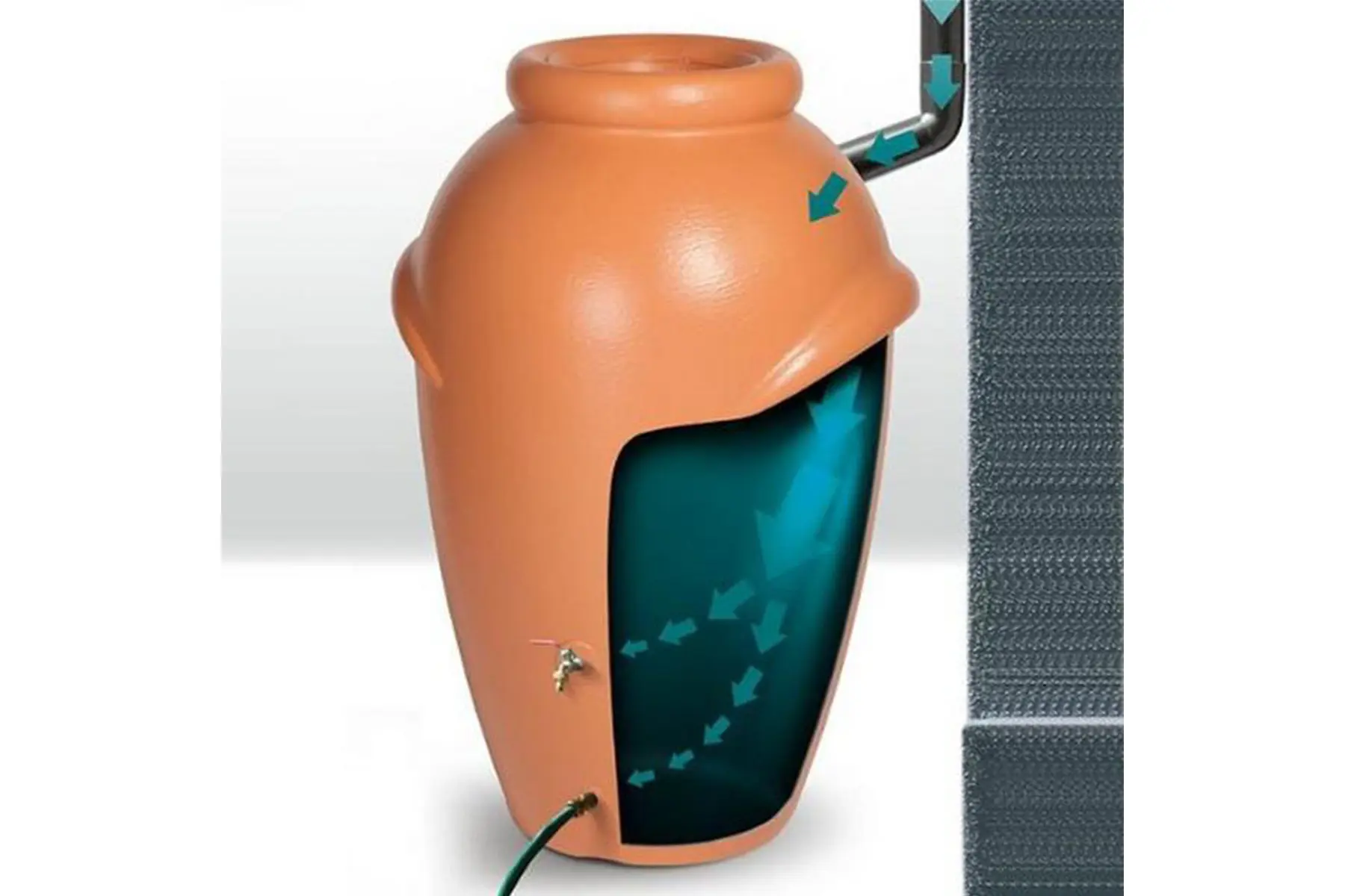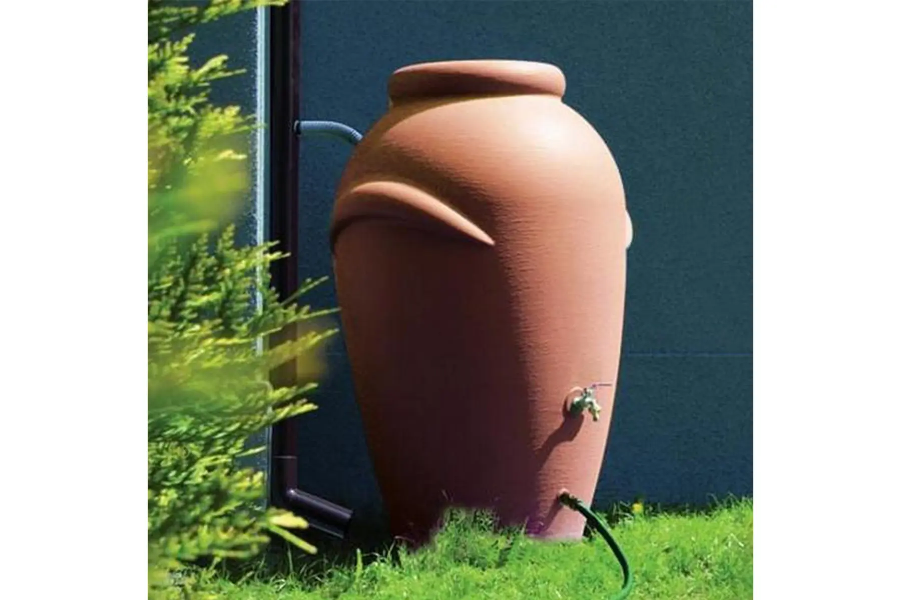 Mooie decoratieve kunststof regenton voor de opvang van regenwater. Deze kwalitatieve regenton heeft bovenin een opening met deksel van Ø 26 cm. Ze is gemaakt uit duurzaam, UV-bestendige kunststof en ziet er net uit als een grote waterkruik.